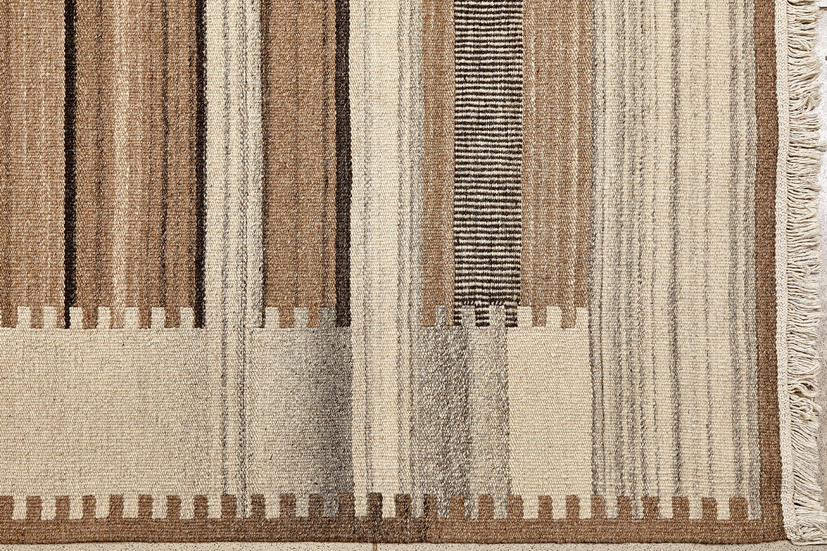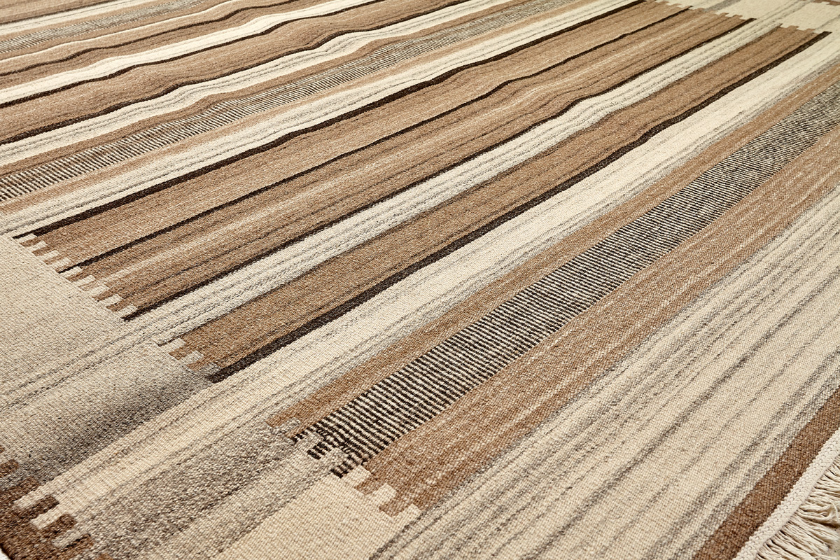 Узор ковров из коллекции Килим создаётся взаимодействием нитей утока и нитей основы, благодаря чему получается геометрический узор.