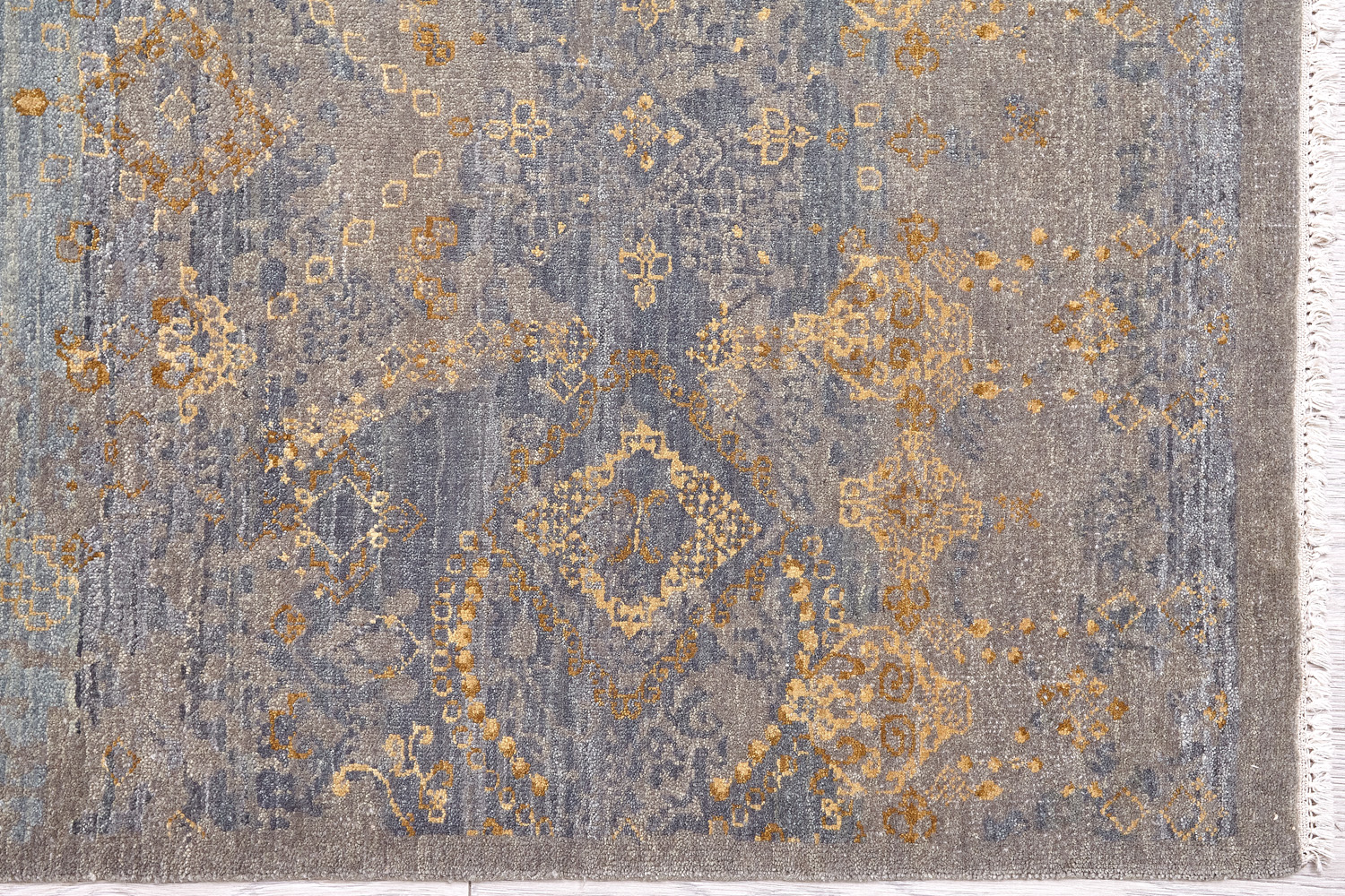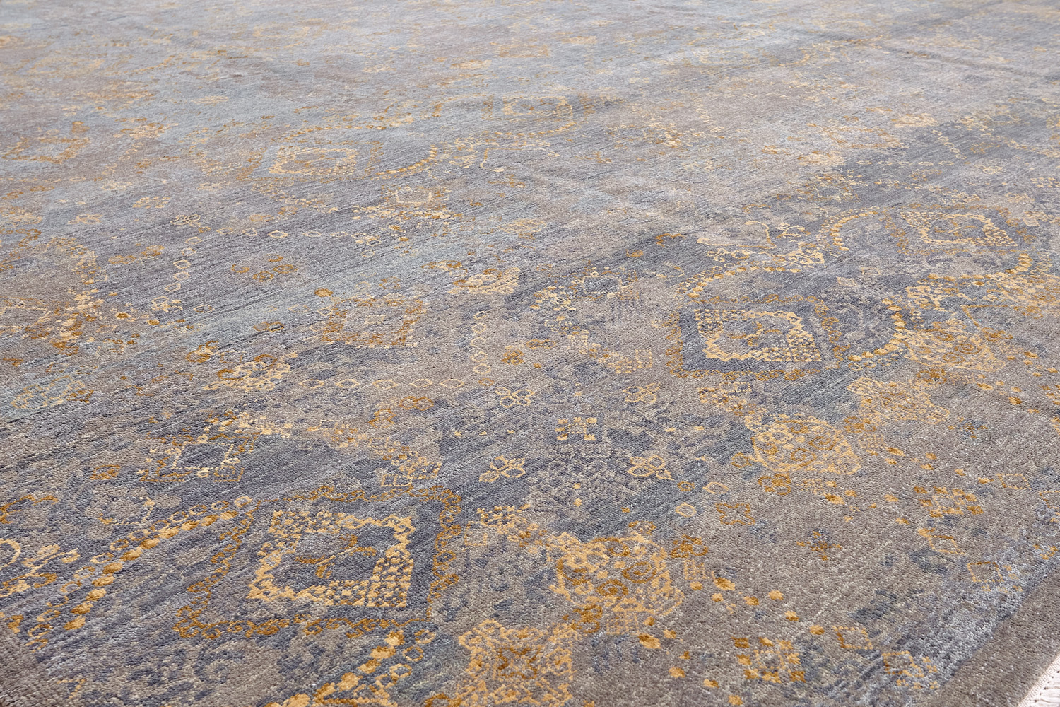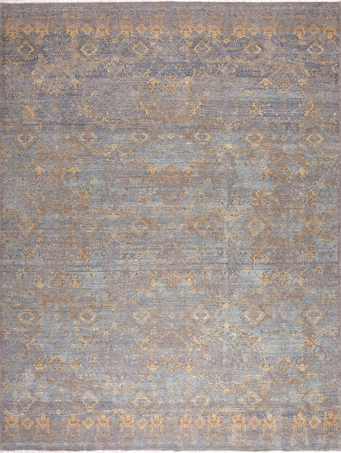 Такой эффект достигается за счет специальной техники плетения, а также обработки, которой подвергают ковры, чтобы они выглядели как антикварные — то есть дорого, элегантно и модно.