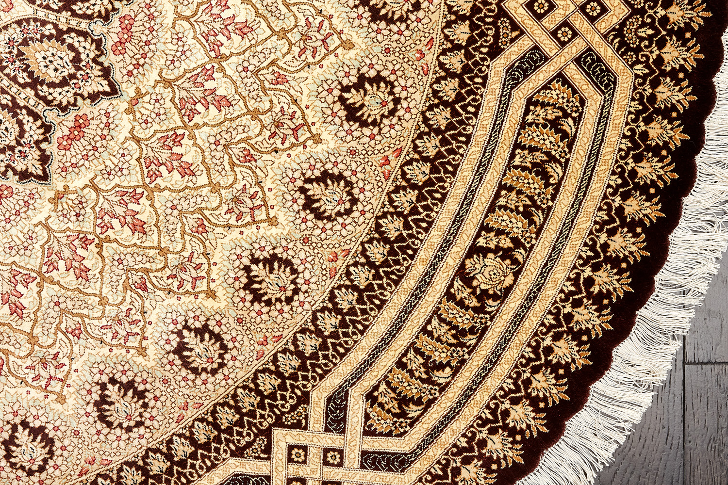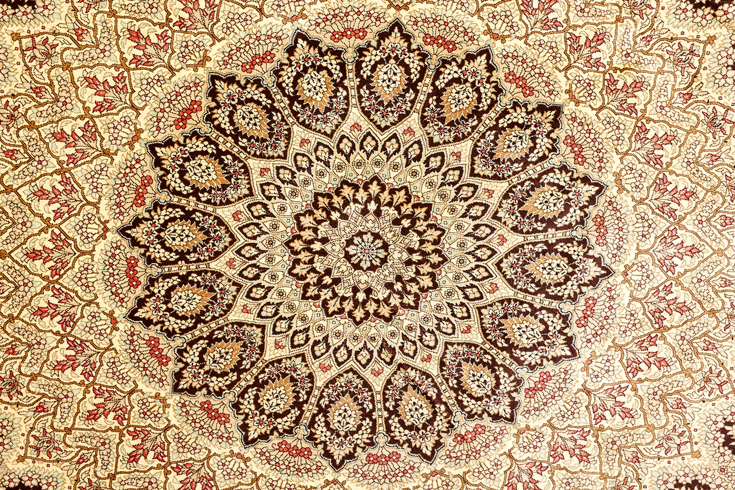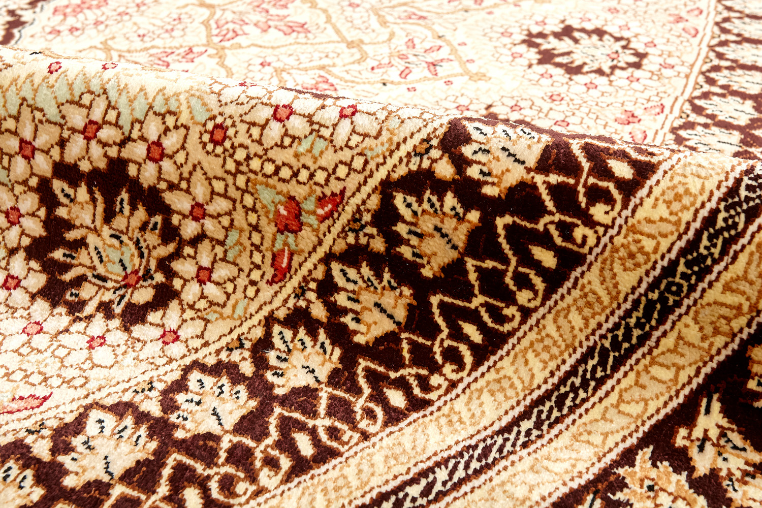 Шёлковая нить гибкая и прочная, поэтому ковры из этого материала считаются самыми износостойкими, а по количеству цветов в одном узоре ковры из коллекции Кум, пожалуй, остаются непревзойдёнными.