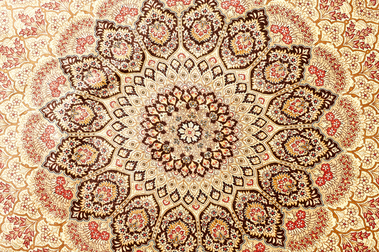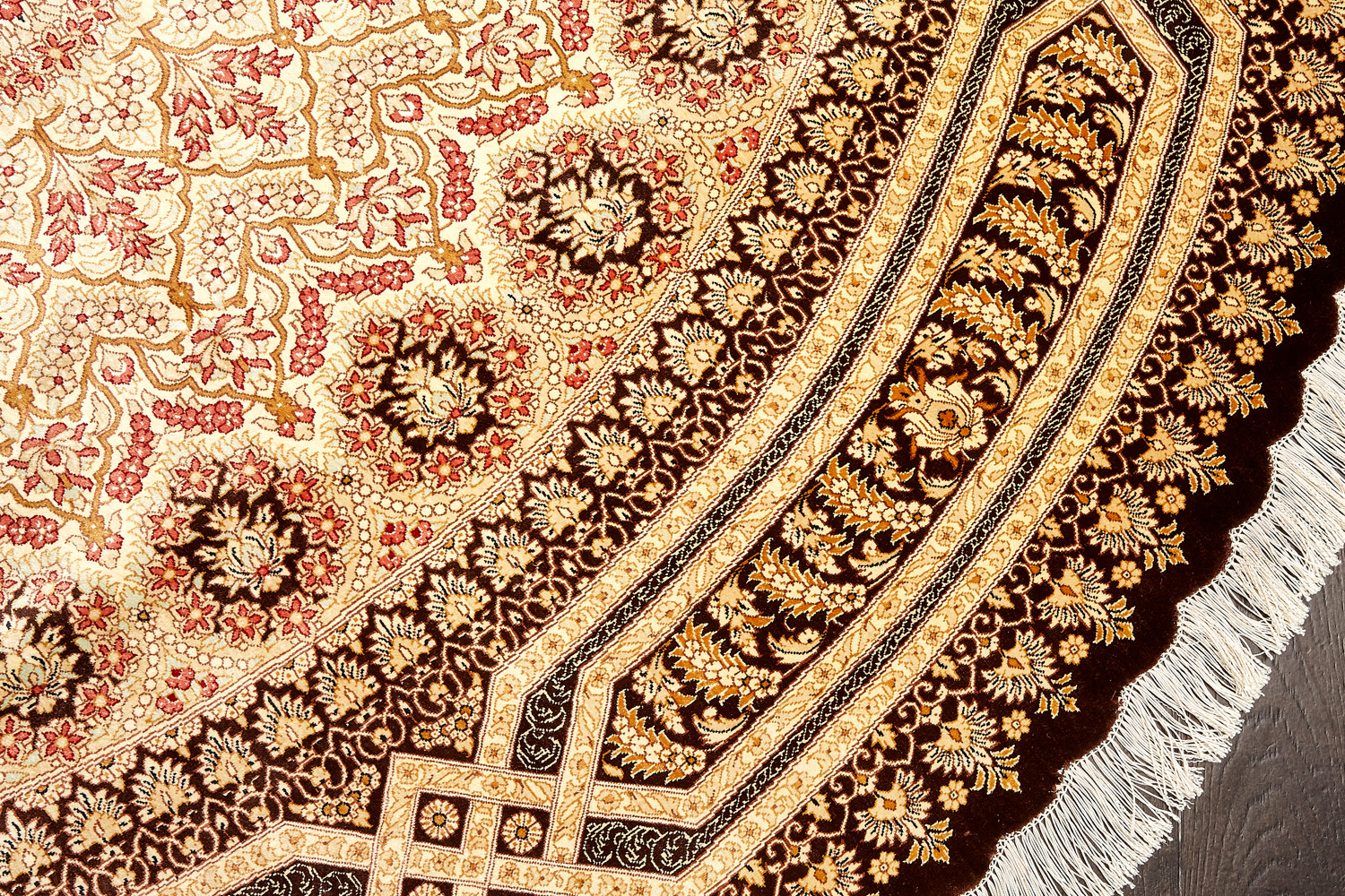 Шёлковая нить гибкая и прочная, поэтому ковры из этого материала считаются самыми износостойкими, а по количеству цветов в одном узоре ковры из коллекции Кум, пожалуй, остаются непревзойдёнными.