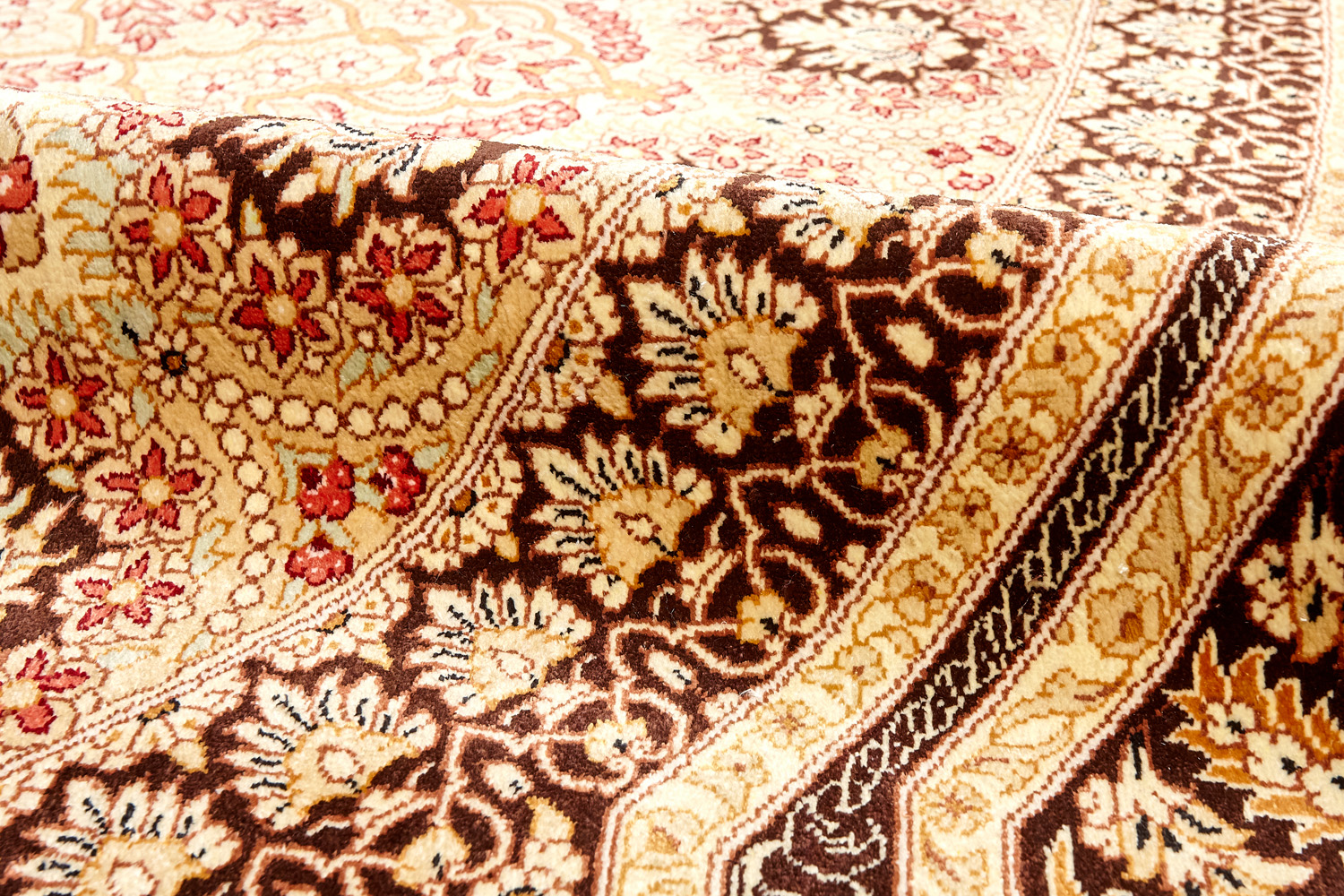 Детальные орнаменты, множество насыщенных оттенков, мягкость и нежность переливающегося шёлка стали отличительными чертами прекрасных ковров и обеспечили им мировую известность.