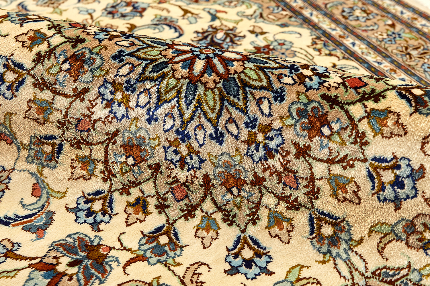 Шёлковые ковры из коллекции Кашан — одни из самых элитных и дорогих ковров в мире. Ковры из 100% шелка ткутся с очень высокой плотностью, от 1 млн до 1,5 млн узелков на 1 кв м. Их отличает очень тонкий и четкий дизайн.