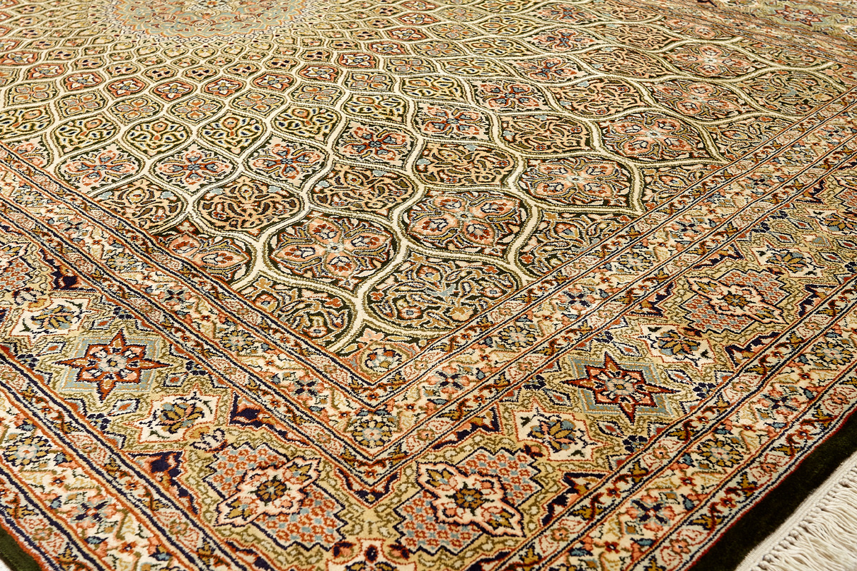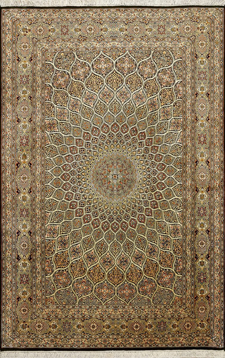 Ковры из коллекции Кашмир ткутся по традиционной технологии из нежнейшего кашмирского шелка. Лучшие произведения индийских мастеров отличает высокая узелковая плотность, прочность и яркость цветов.