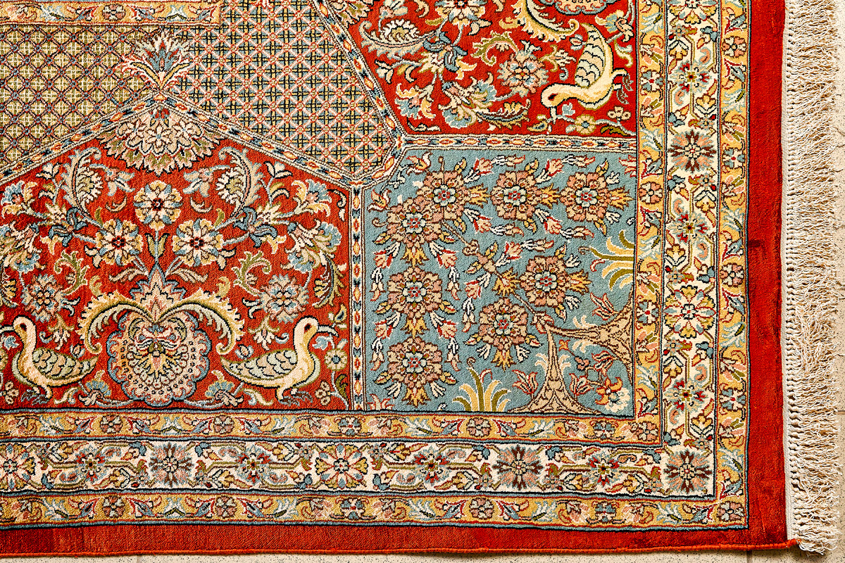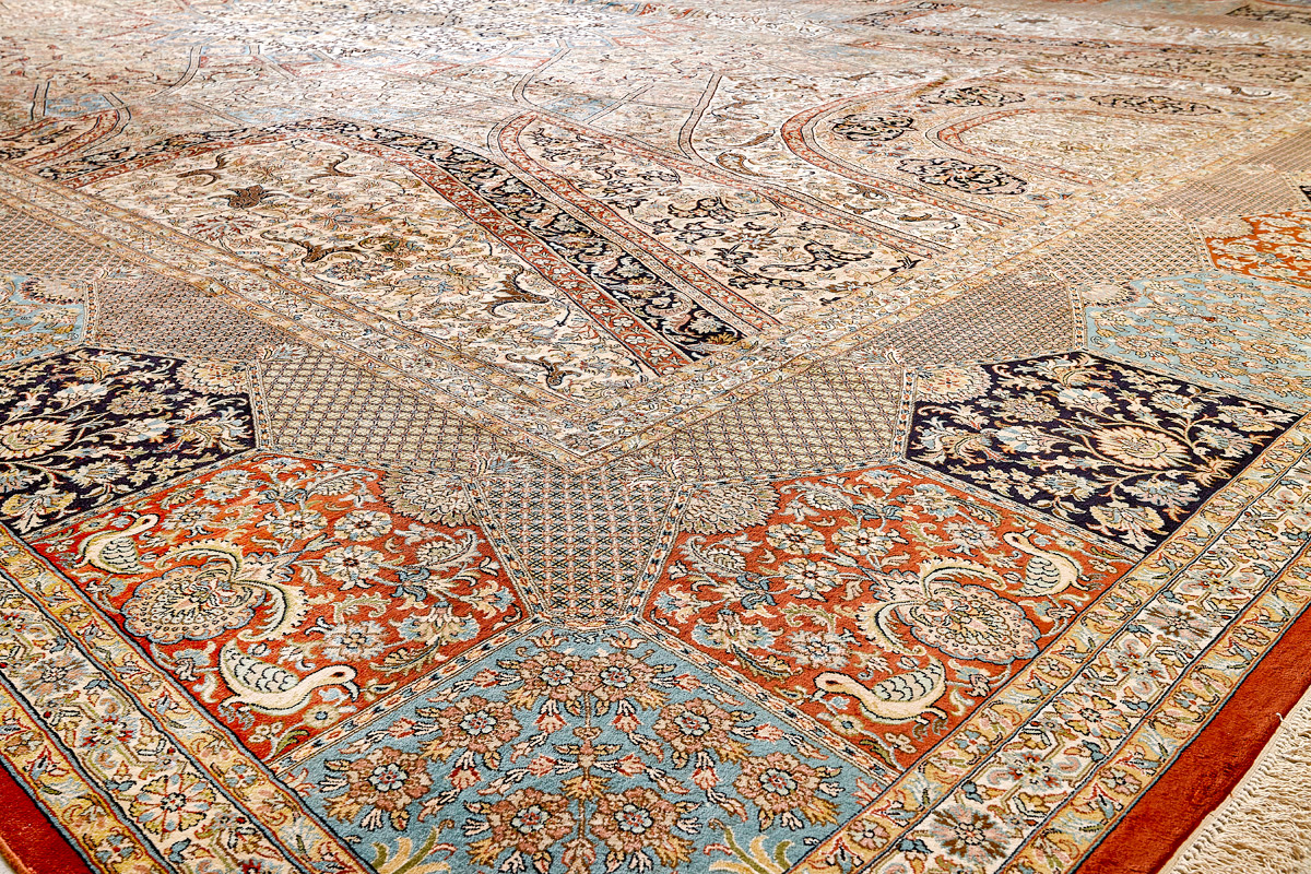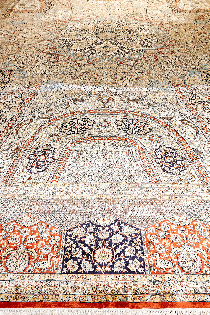 Ковры из коллекции Кашмир ткутся по традиционной технологии из нежнейшего кашмирского шелка. Лучшие произведения индийских мастеров отличает высокая узелковая плотность, прочность и яркость цветов.