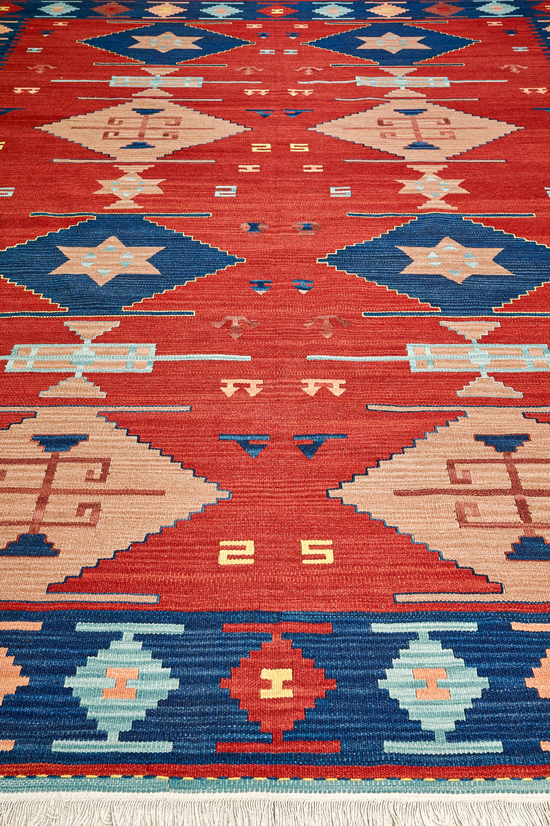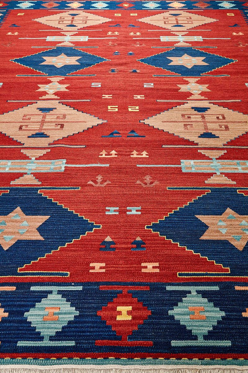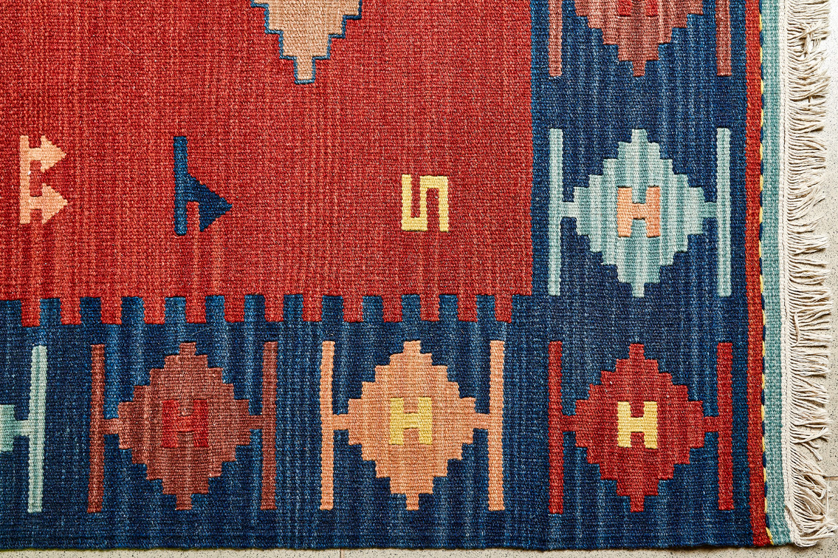 Килим — безворсовый двусторонний ковер, в его составе — высококачественная шерсть, а в дизайне — скандинавские мотивы.