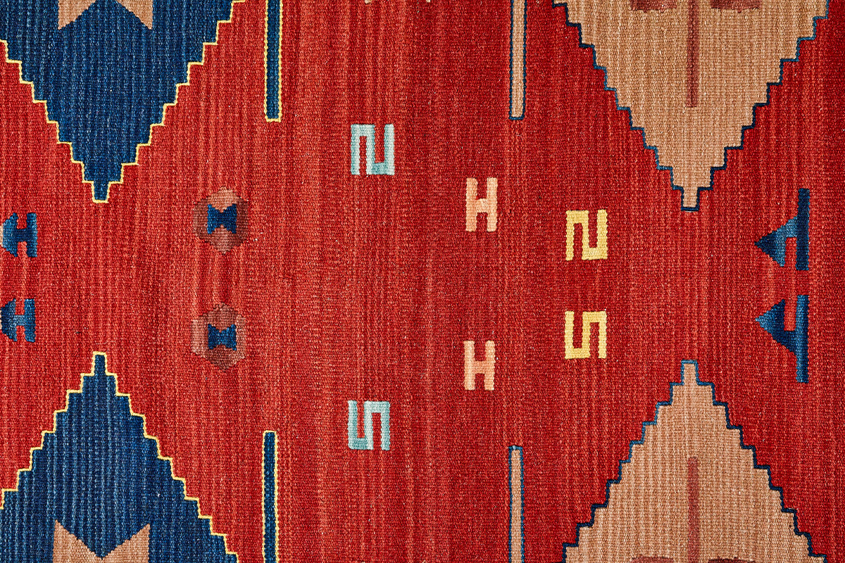 Узор ковров из коллекции Килим создаётся взаимодействием нитей утока и нитей основы, благодаря чему получается геометрический узор.