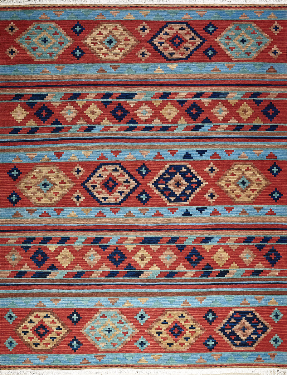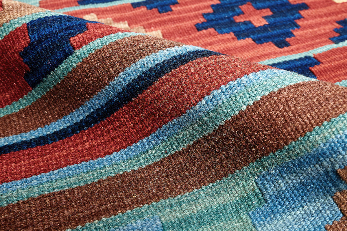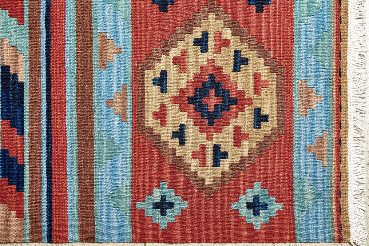 Узор ковров из коллекции Килим создаётся взаимодействием нитей утока и нитей основы, благодаря чему получается геометрический узор.