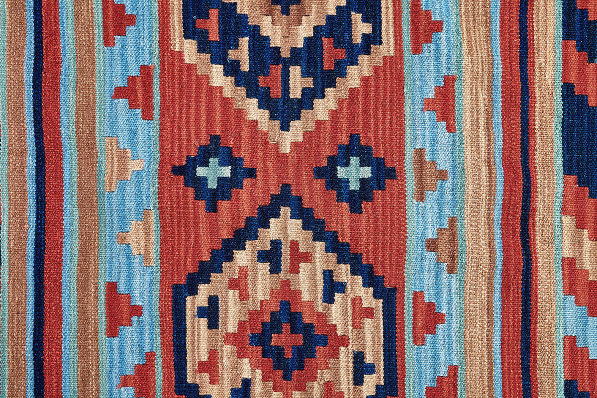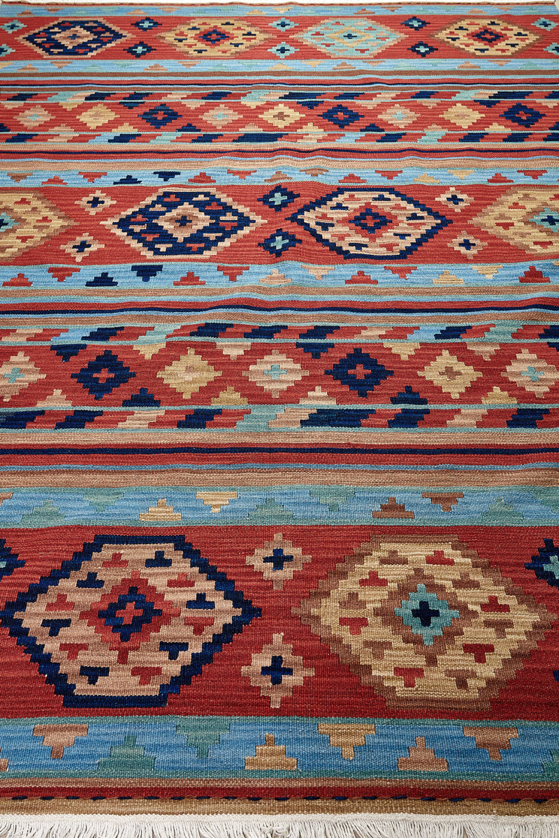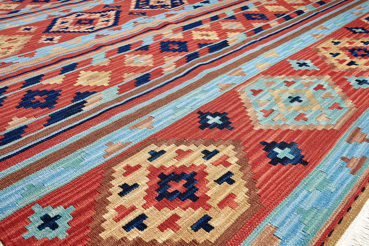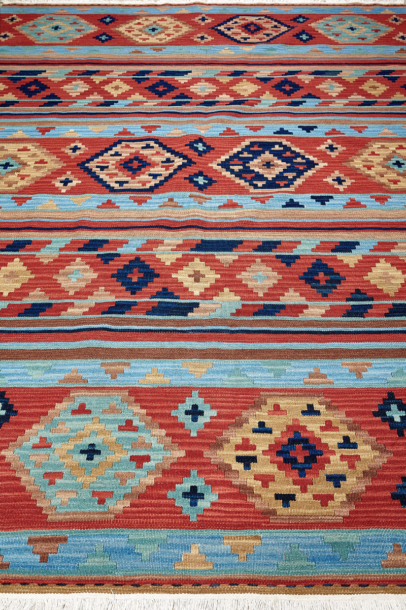 Узор ковров из коллекции Килим создаётся взаимодействием нитей утока и нитей основы, благодаря чему получается геометрический узор.