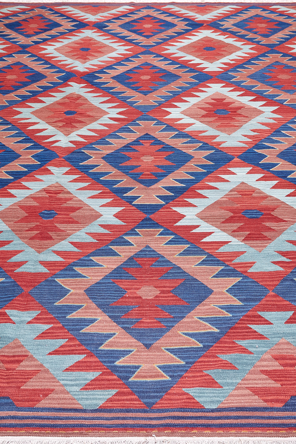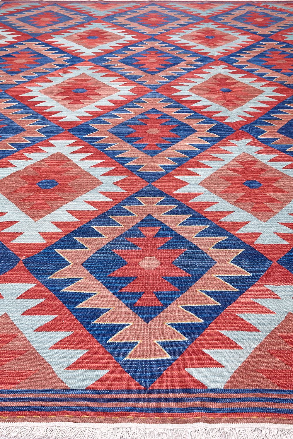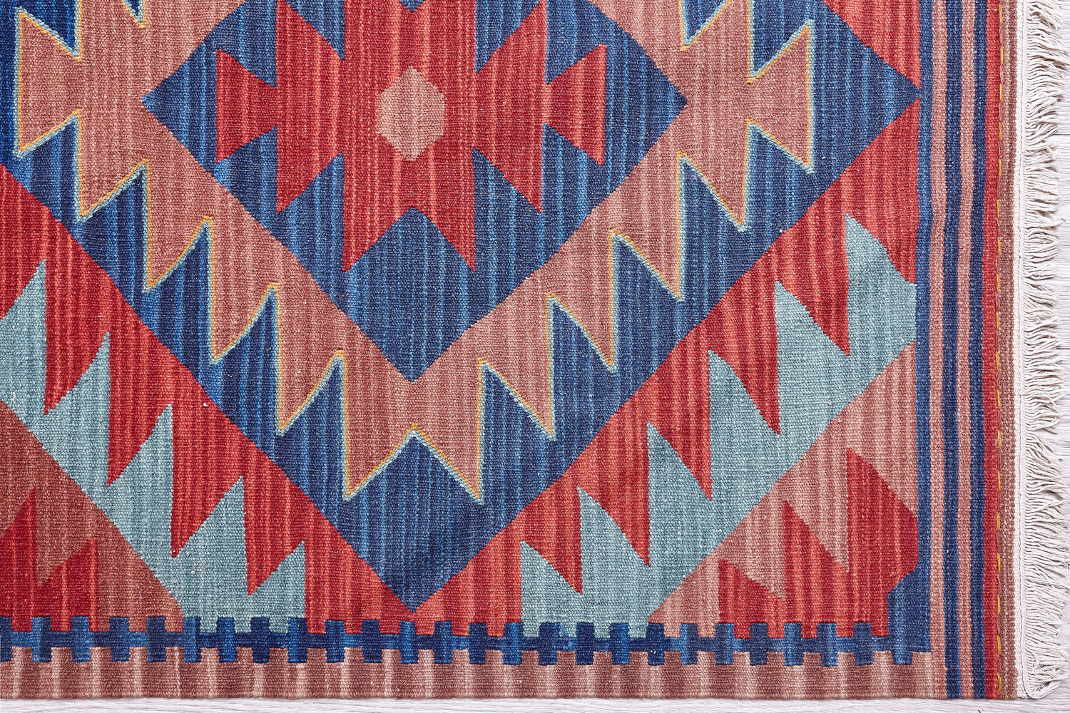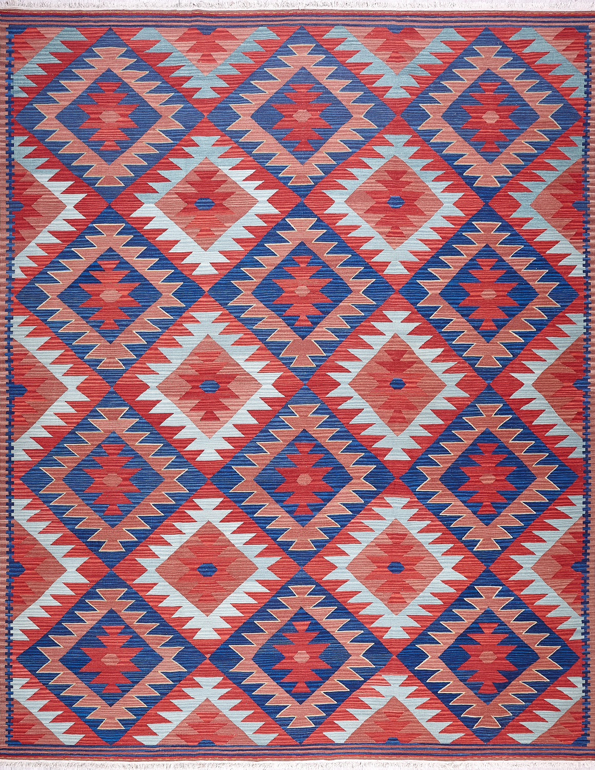 Узор ковров из коллекции Килим создаётся взаимодействием нитей утока и нитей основы, благодаря чему получается геометрический узор.