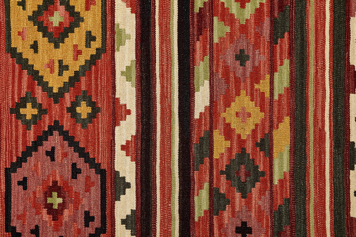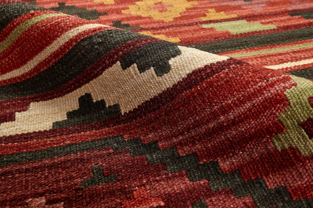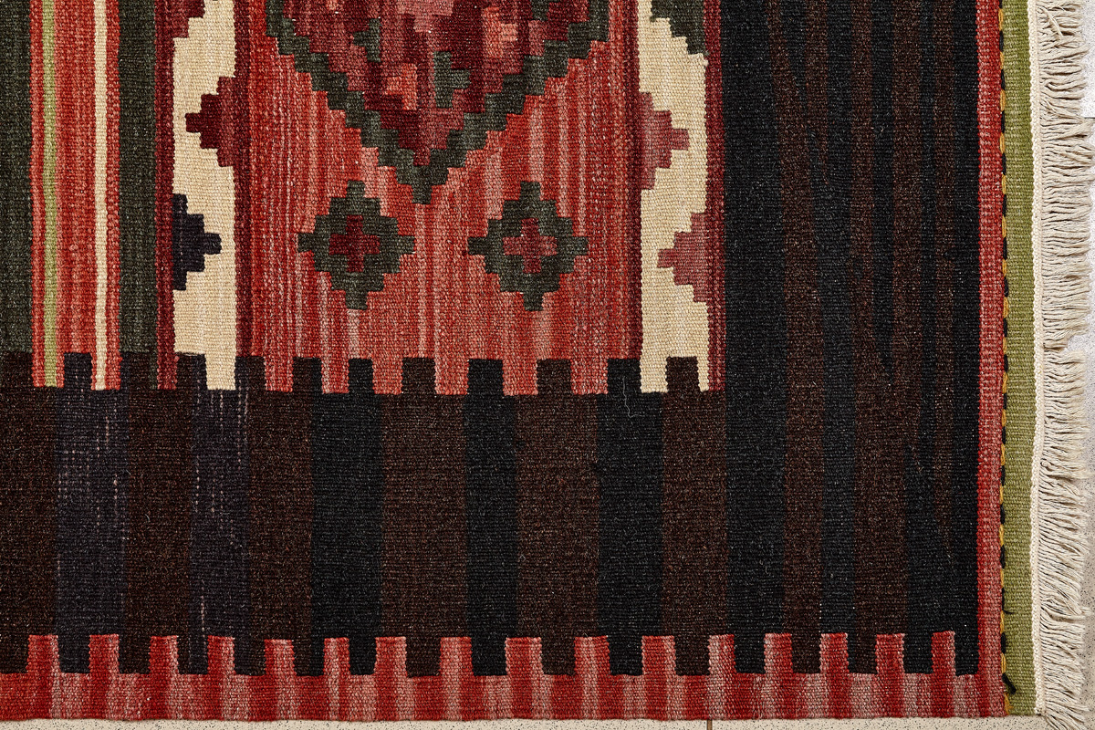 Узор ковров из коллекции Килим создаётся взаимодействием нитей утока и нитей основы, благодаря чему получается геометрический узор.