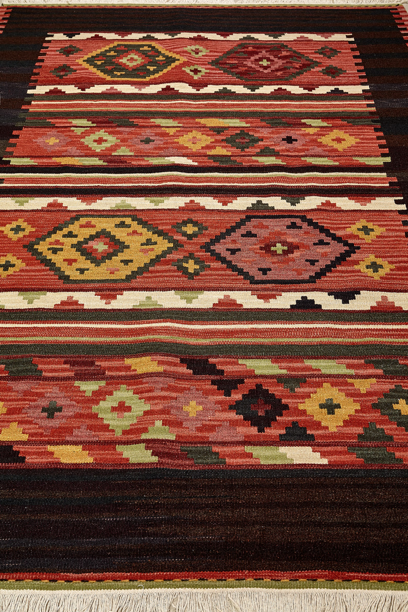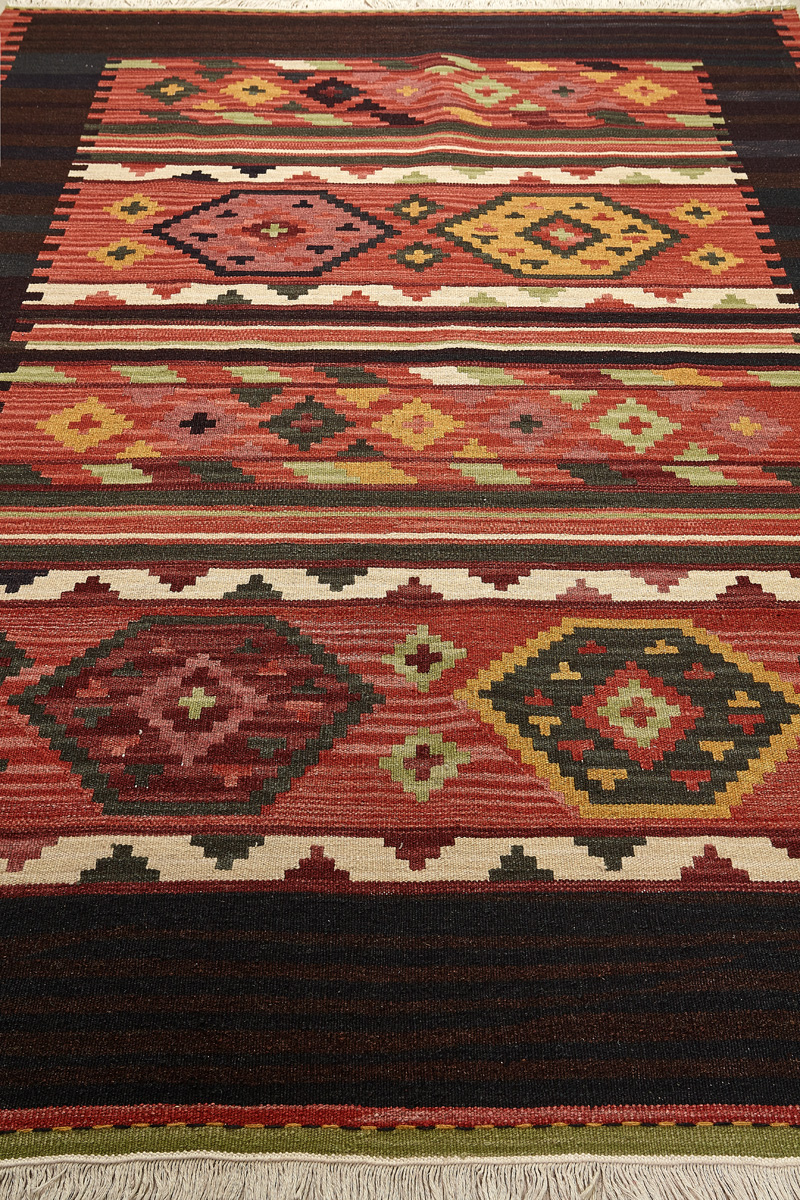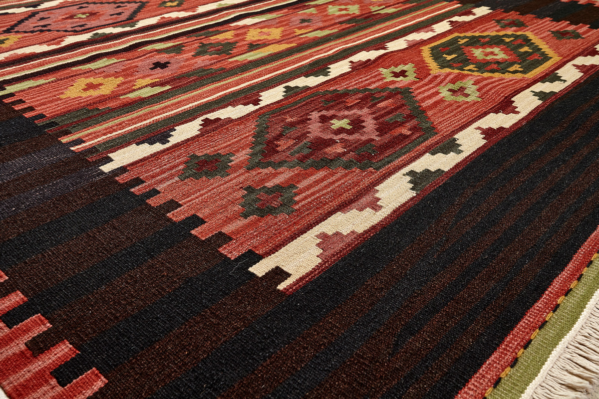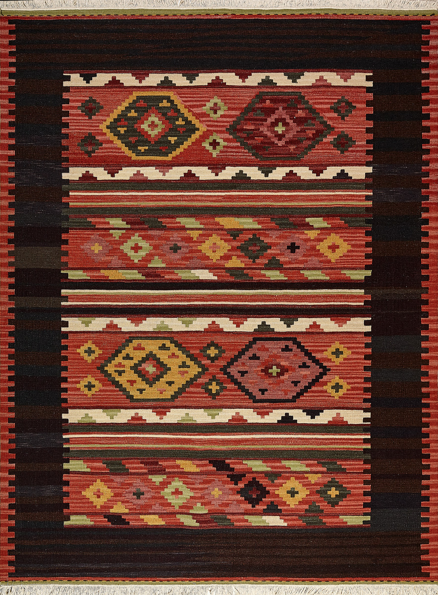Узор ковров из коллекции Килим создаётся взаимодействием нитей утока и нитей основы, благодаря чему получается геометрический узор.