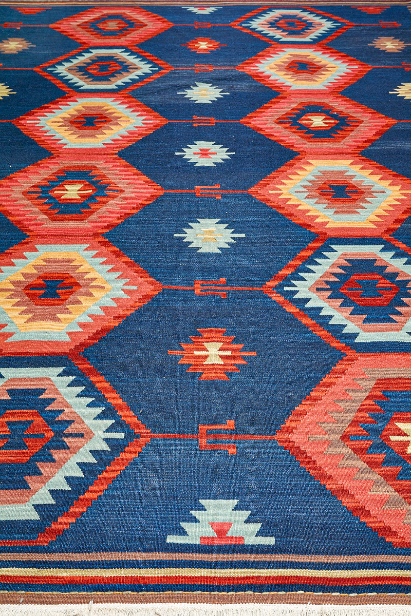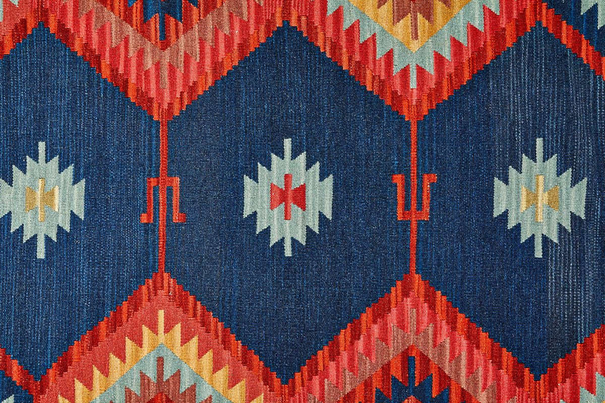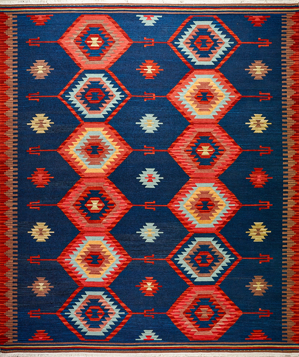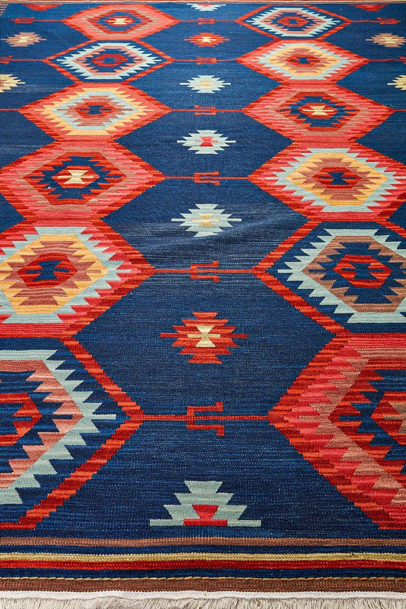 Узор ковров из коллекции Килим создаётся взаимодействием нитей утока и нитей основы, благодаря чему получается геометрический узор.