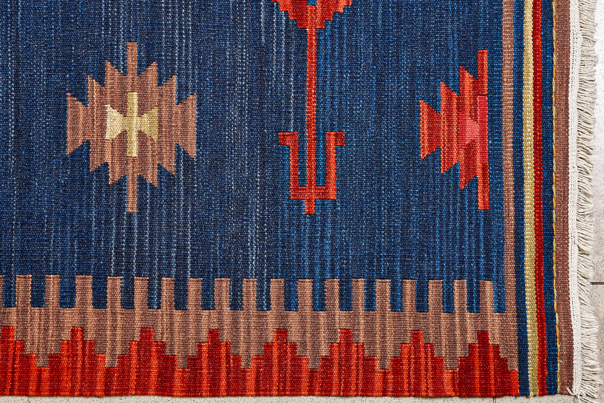 Килим — безворсовый двусторонний ковер, в его составе — высококачественная шерсть, а в дизайне — скандинавские мотивы.