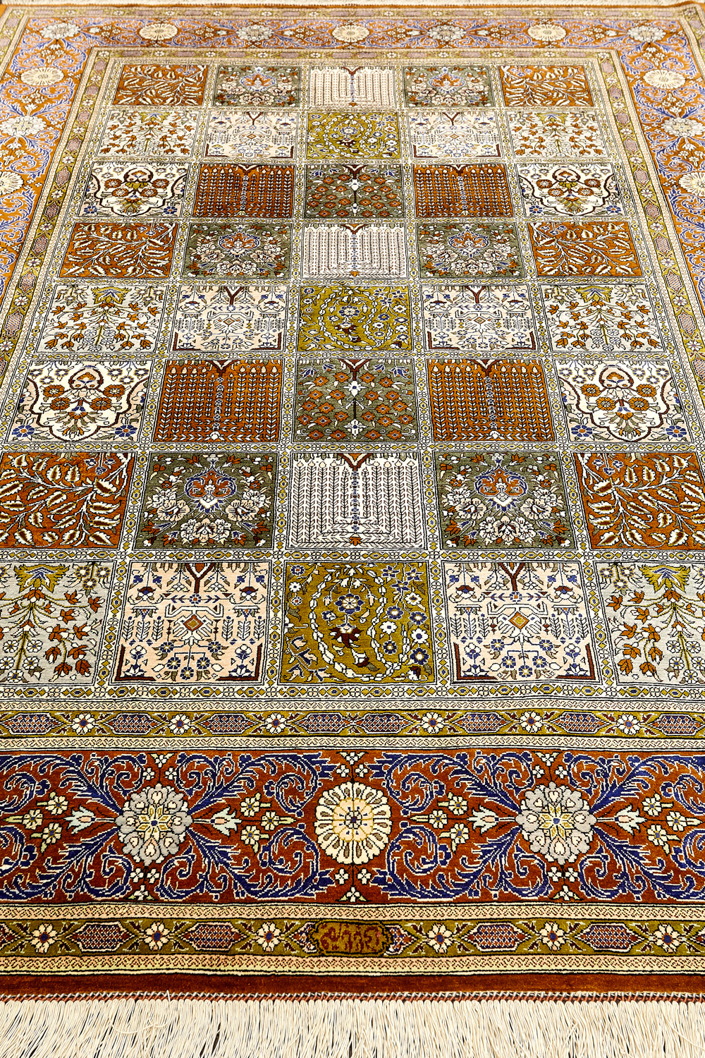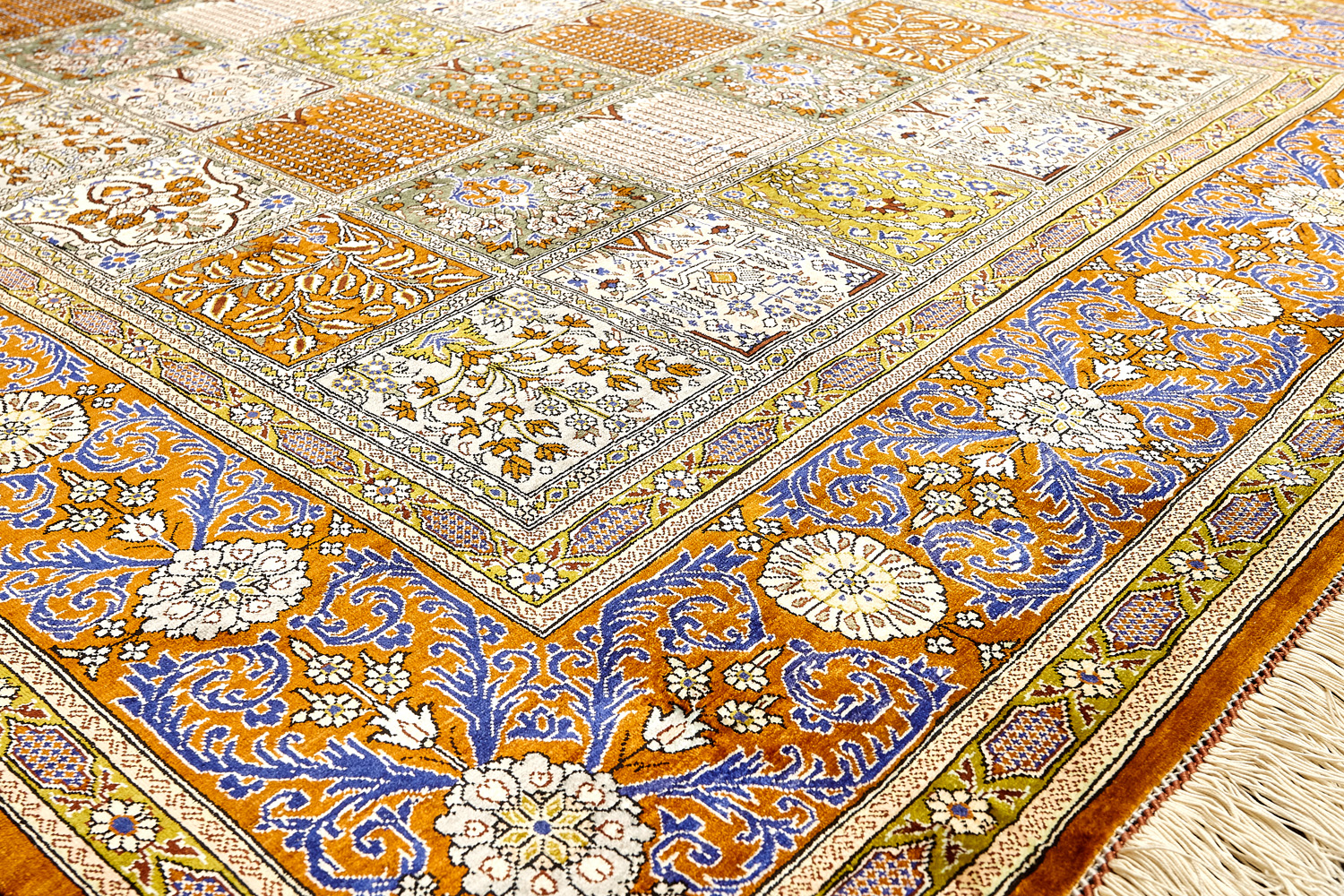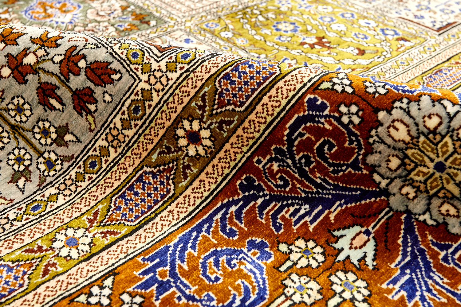 Шёлковая нить гибкая и прочная, поэтому ковры из этого материала считаются самыми износостойкими, а по количеству цветов в одном узоре ковры из коллекции Кум, пожалуй, остаются непревзойдёнными.