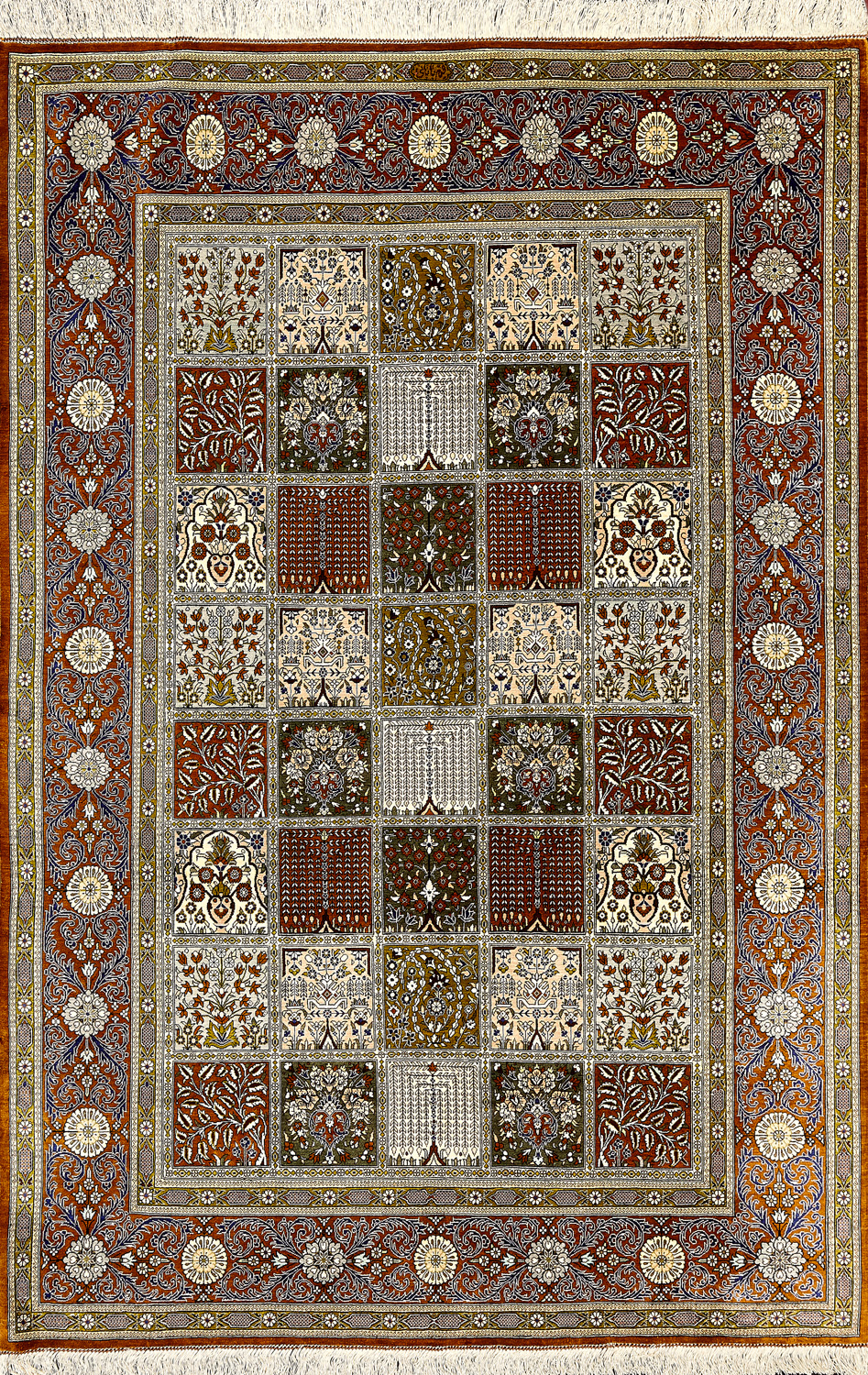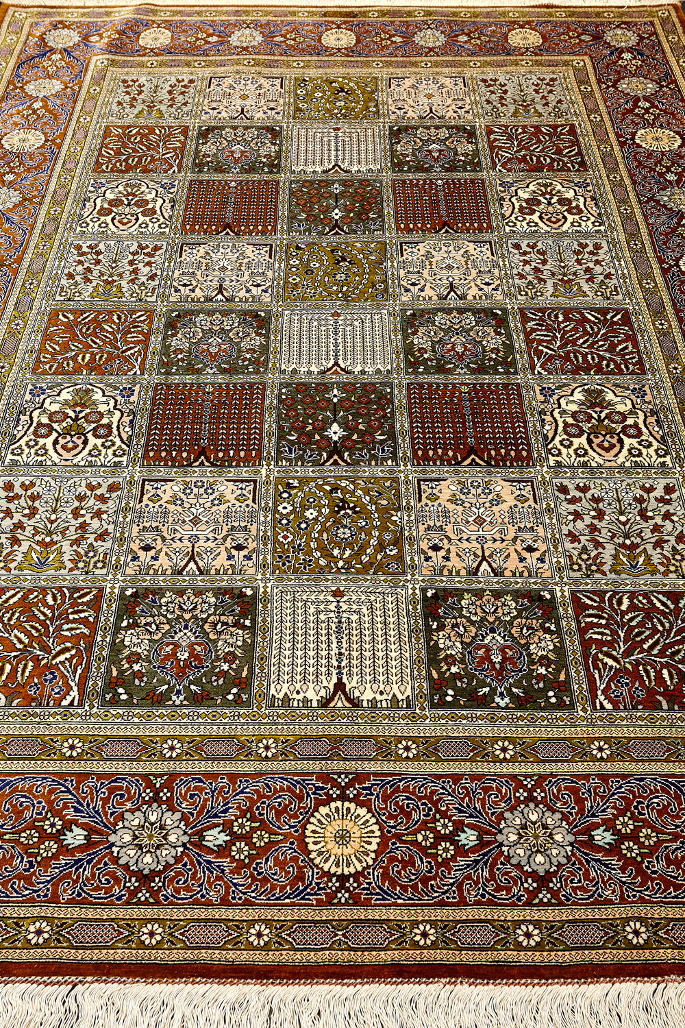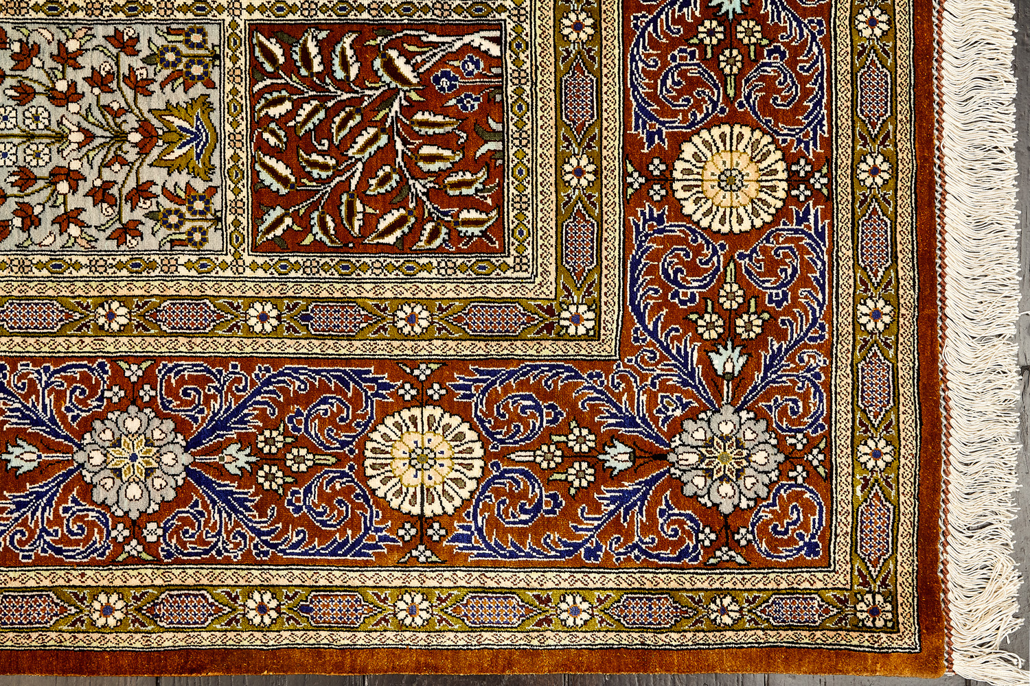 Шёлковая нить гибкая и прочная, поэтому ковры из этого материала считаются самыми износостойкими, а по количеству цветов в одном узоре ковры из коллекции Кум, пожалуй, остаются непревзойдёнными.