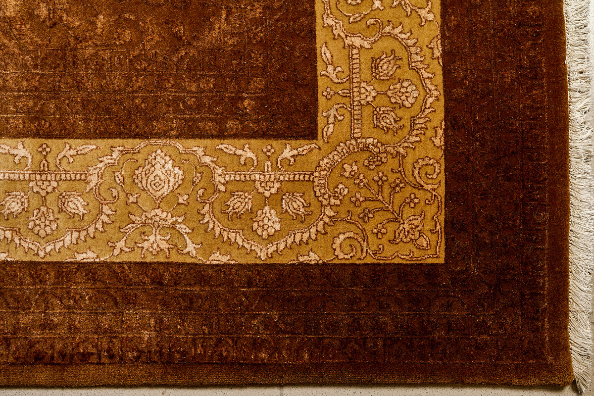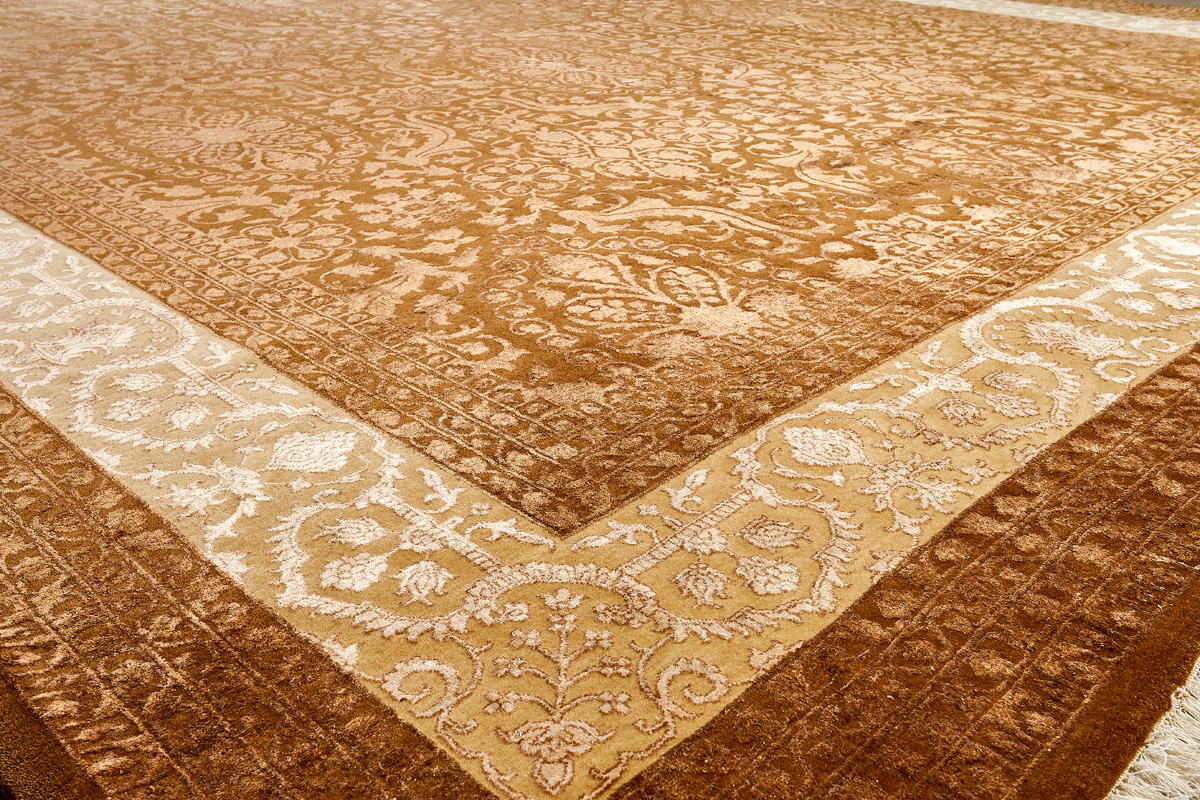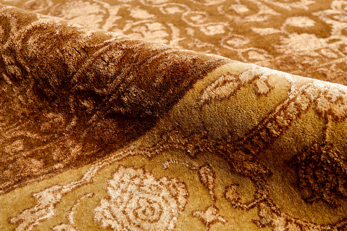 Каждый ковер в этой коллекции соткан вручную из шерсти и арт шёлка опытными индийскими мастерами.