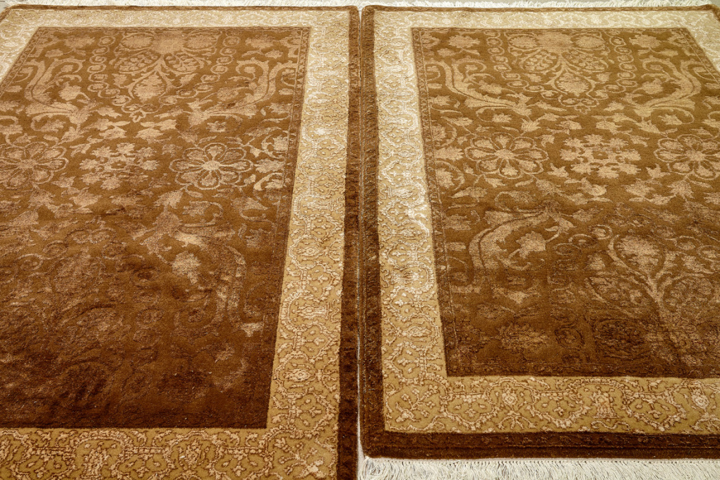 Каждый ковер в этой коллекции соткан вручную из шерсти и арт шёлка опытными индийскими мастерами.