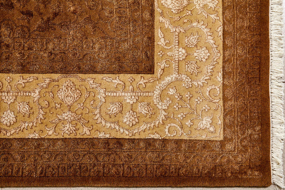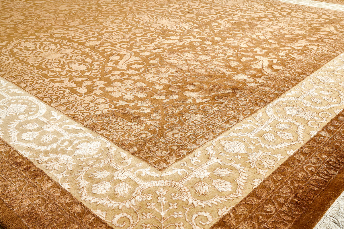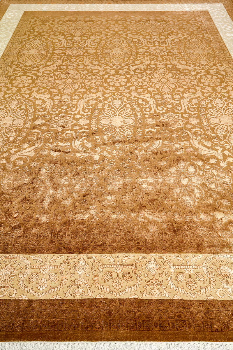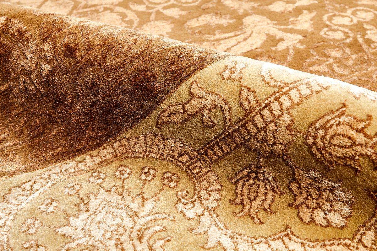 Каждый ковер в этой коллекции соткан вручную из шерсти и арт шёлка опытными индийскими мастерами.
