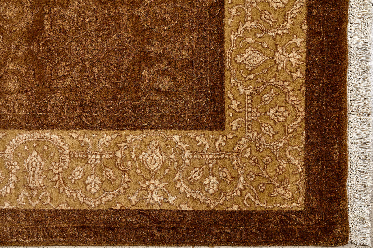 Каждый ковер в этой коллекции соткан вручную из шерсти и арт шёлка опытными индийскими мастерами.