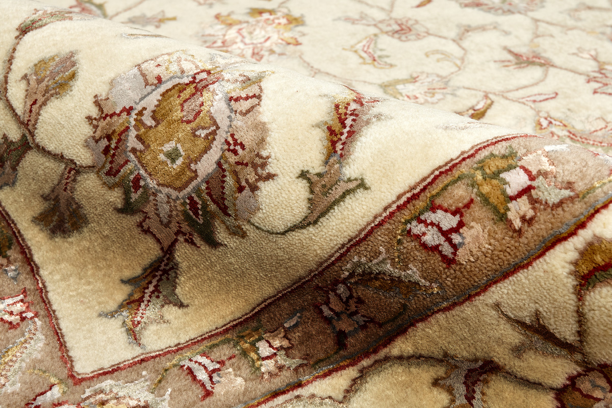 Более пяти веков назад в городе Агра зародилась знаменитая индийская школа ковроткачества, прославившаяся не меньше, чем расположенный здесь же Тадж-Махал. Мощное персидское влияние, помноженное на местный колорит, привело к появлению оригинальных орнаментов с богатыми растительными узорами — причудливым цветам, ветвям и листьям, разбросанным по всему полю ковра.