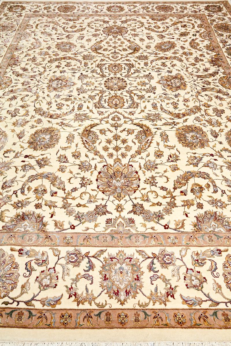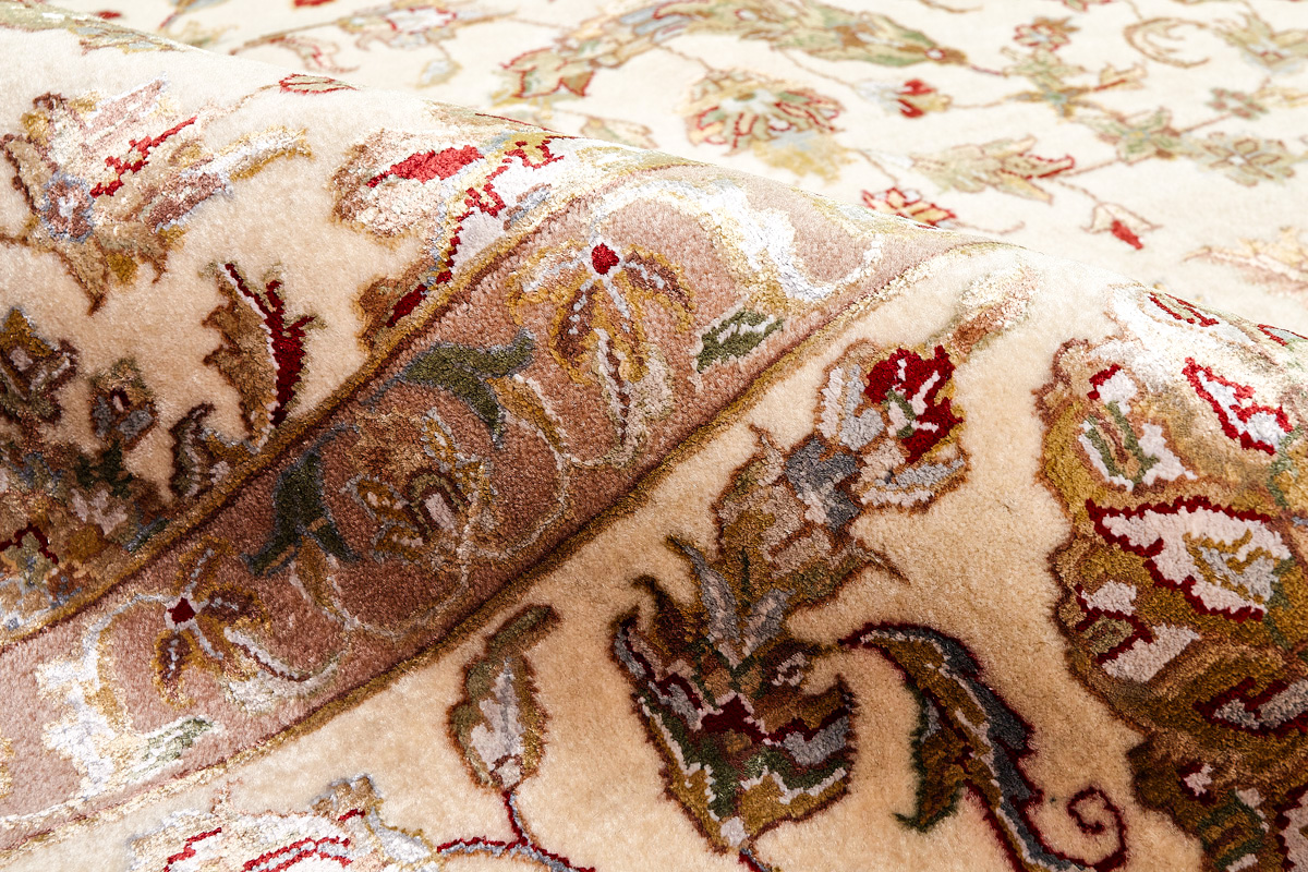 Более пяти веков назад в городе Агра зародилась знаменитая индийская школа ковроткачества, прославившаяся не меньше, чем расположенный здесь же Тадж-Махал. Мощное персидское влияние, помноженное на местный колорит, привело к появлению оригинальных орнаментов с богатыми растительными узорами — причудливым цветам, ветвям и листьям, разбросанным по всему полю ковра.