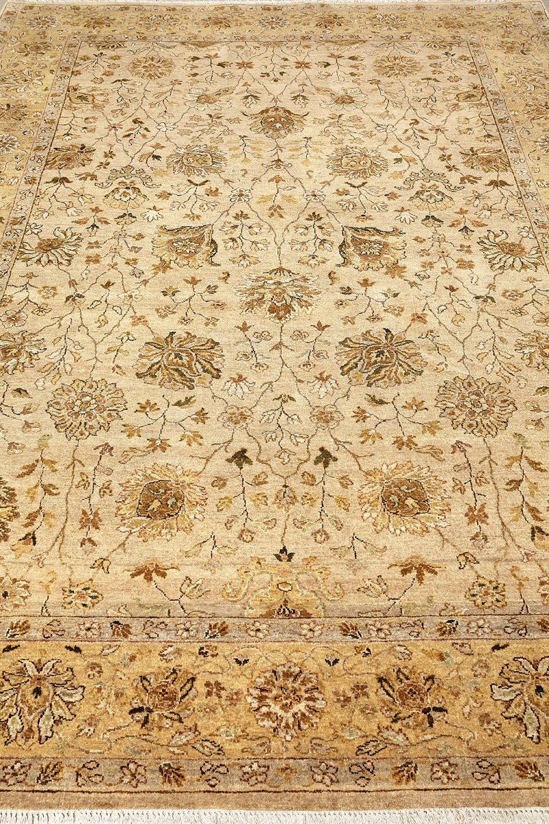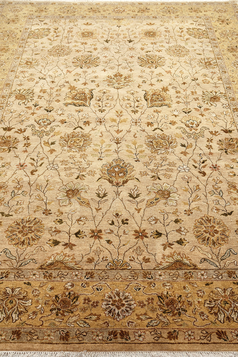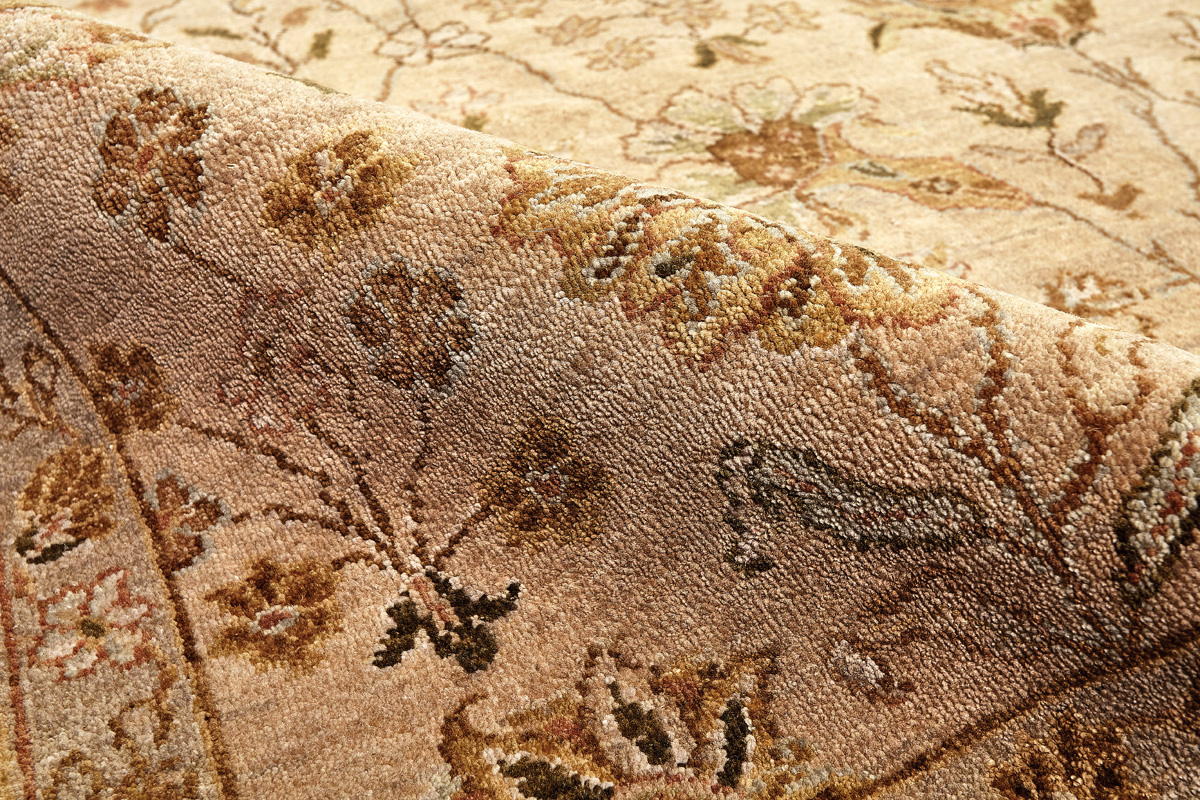 Более пяти веков назад в городе Агра зародилась знаменитая индийская школа ковроткачества, прославившаяся не меньше, чем расположенный здесь же Тадж-Махал. Мощное персидское влияние, помноженное на местный колорит, привело к появлению оригинальных орнаментов с богатыми растительными узорами — причудливым цветам, ветвям и листьям, разбросанным по всему полю ковра.