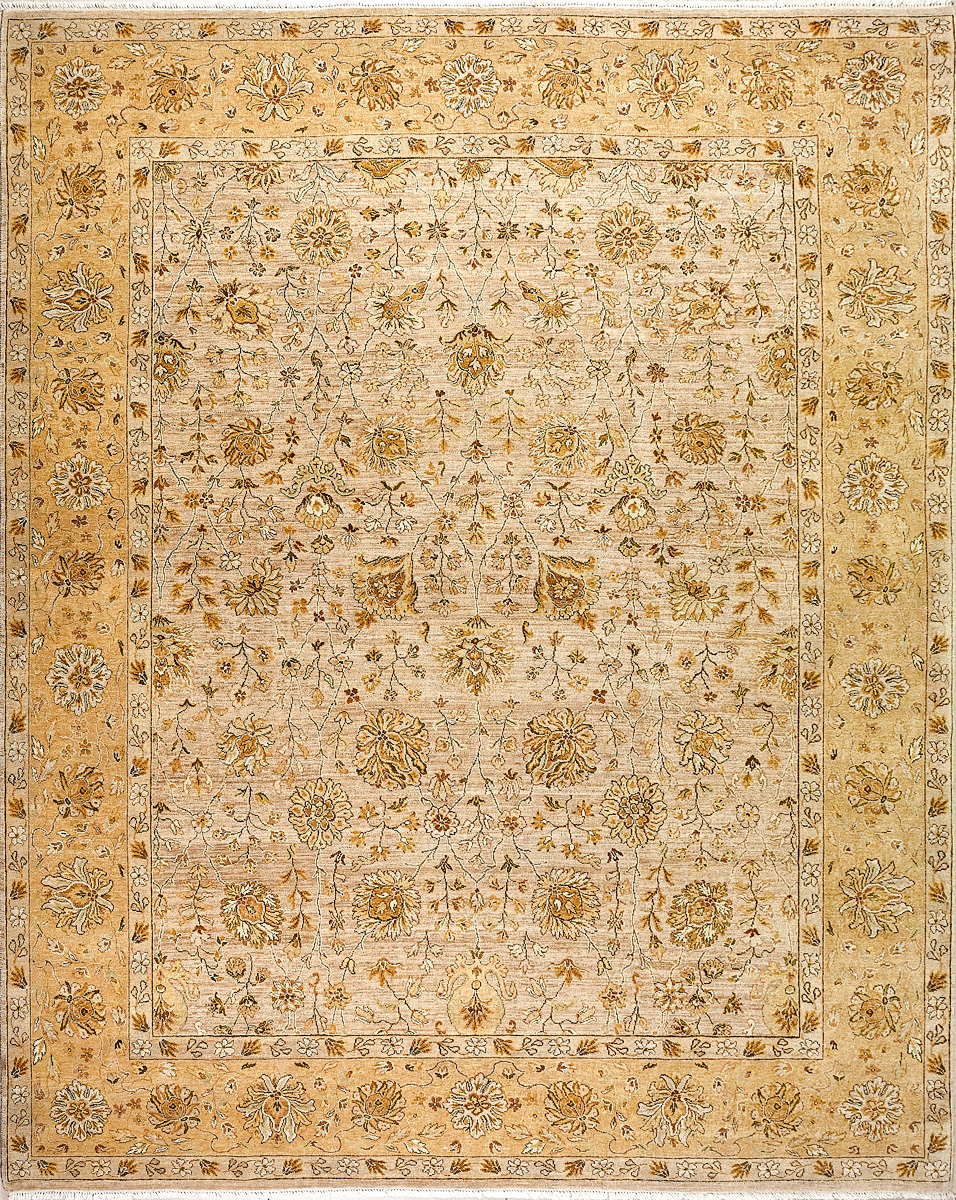 Более пяти веков назад в городе Агра зародилась знаменитая индийская школа ковроткачества, прославившаяся не меньше, чем расположенный здесь же Тадж-Махал. Мощное персидское влияние, помноженное на местный колорит, привело к появлению оригинальных орнаментов с богатыми растительными узорами — причудливым цветам, ветвям и листьям, разбросанным по всему полю ковра.