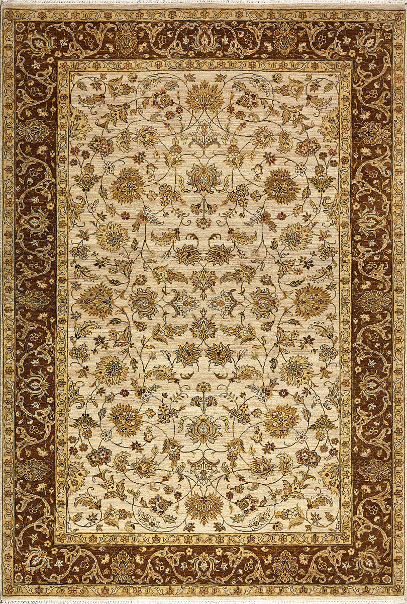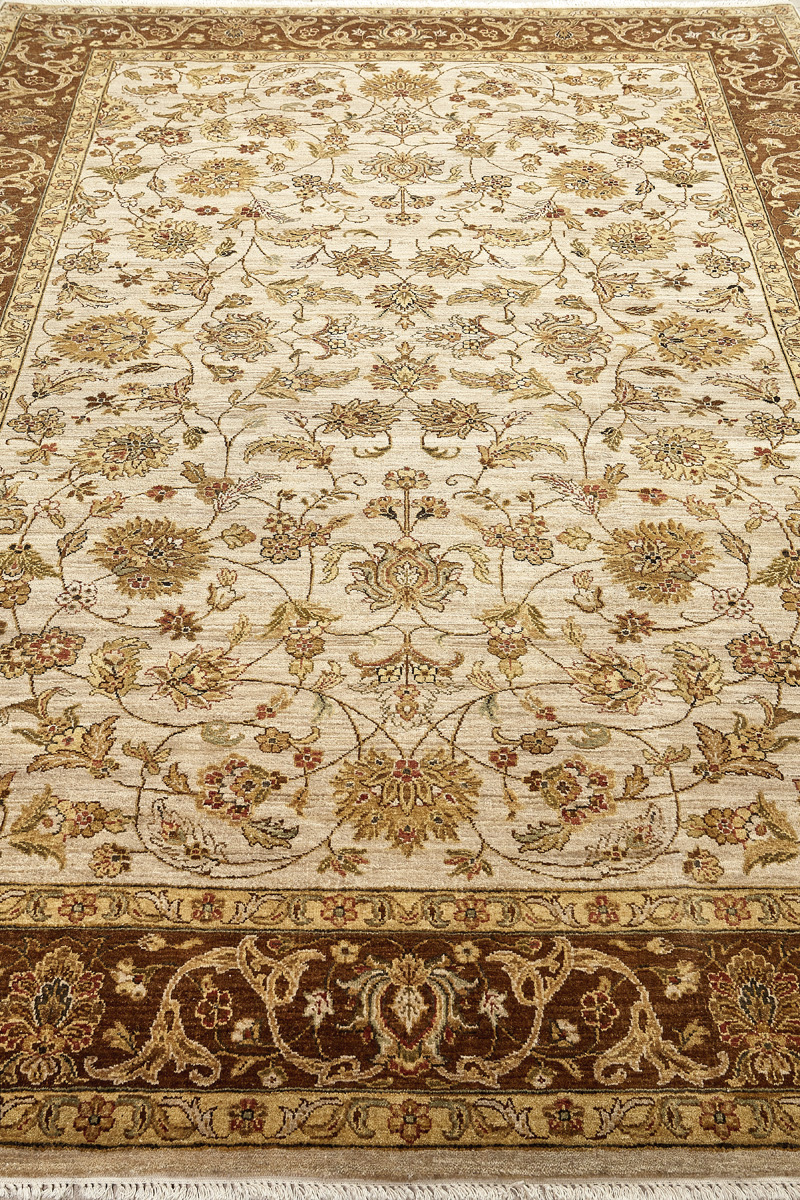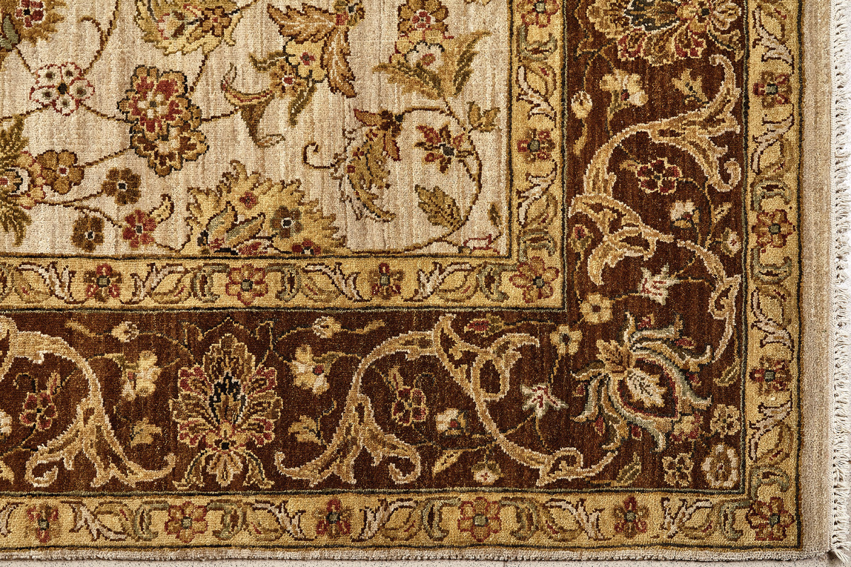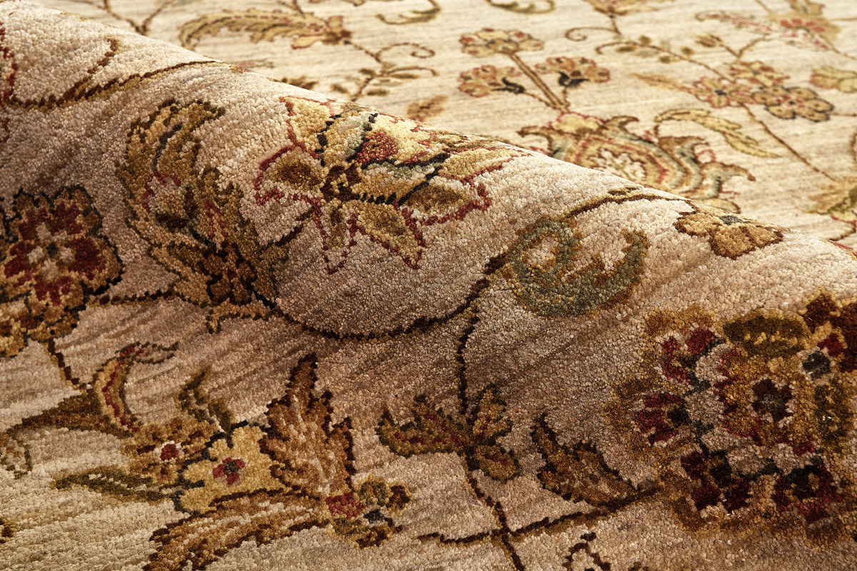 Более пяти веков назад в городе Агра зародилась знаменитая индийская школа ковроткачества, прославившаяся не меньше, чем расположенный здесь же Тадж-Махал. Мощное персидское влияние, помноженное на местный колорит, привело к появлению оригинальных орнаментов с богатыми растительными узорами — причудливым цветам, ветвям и листьям, разбросанным по всему полю ковра.