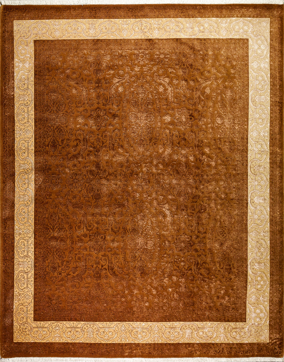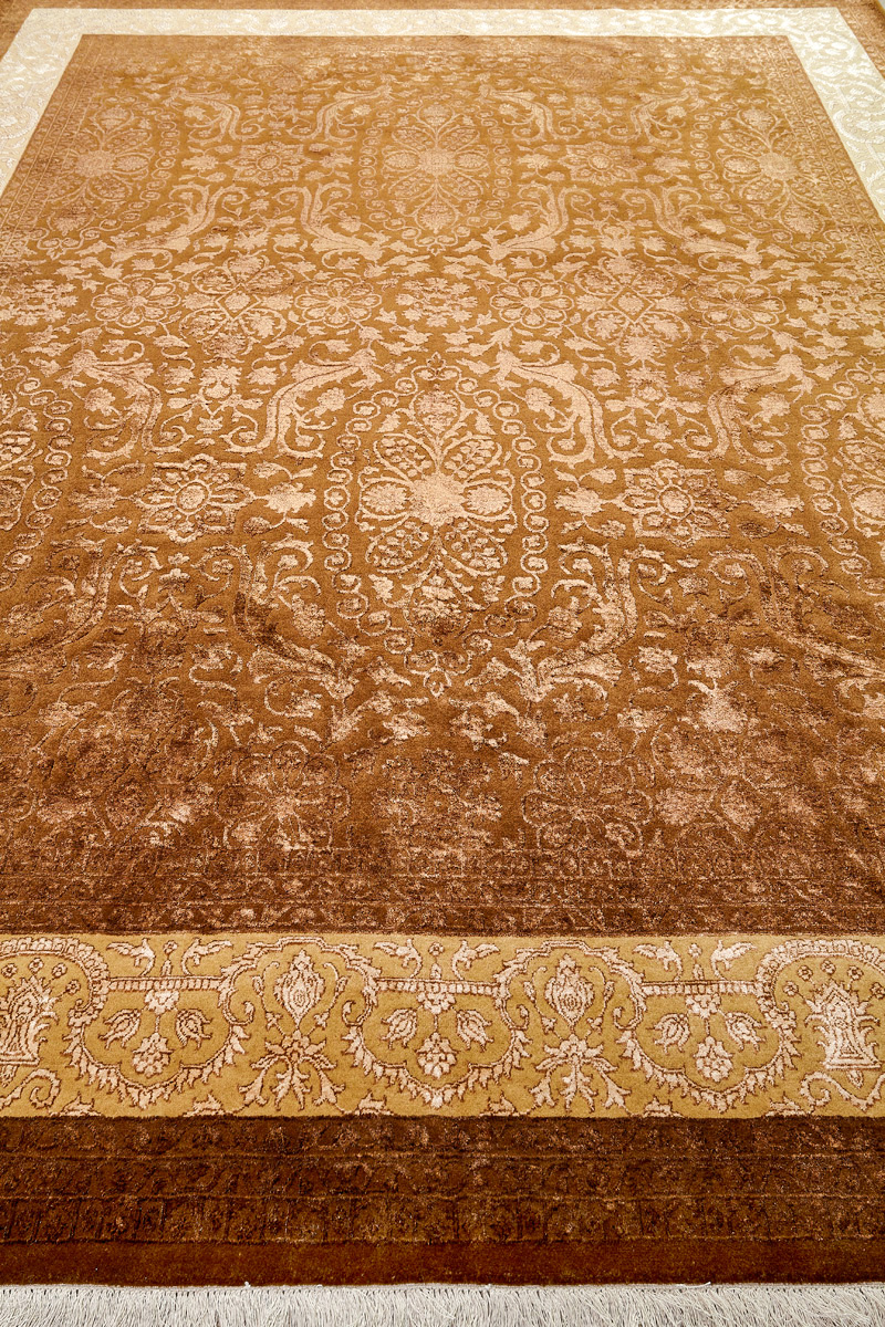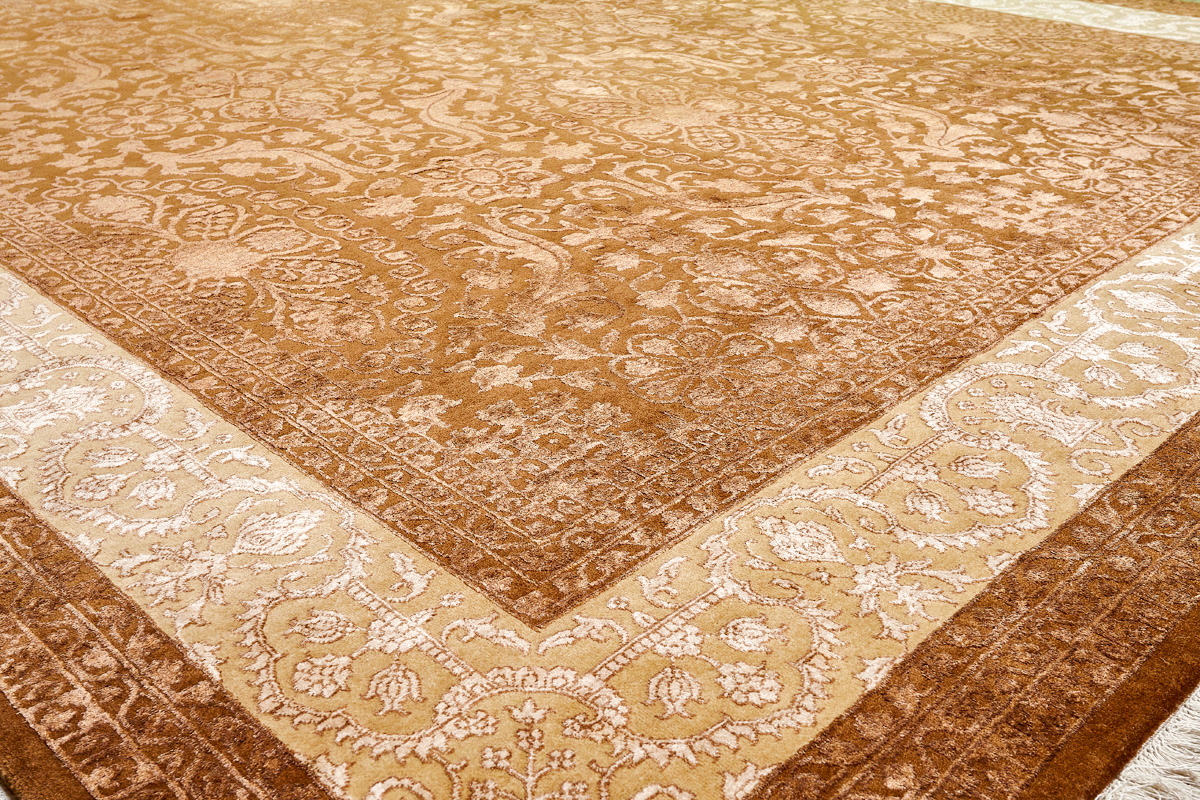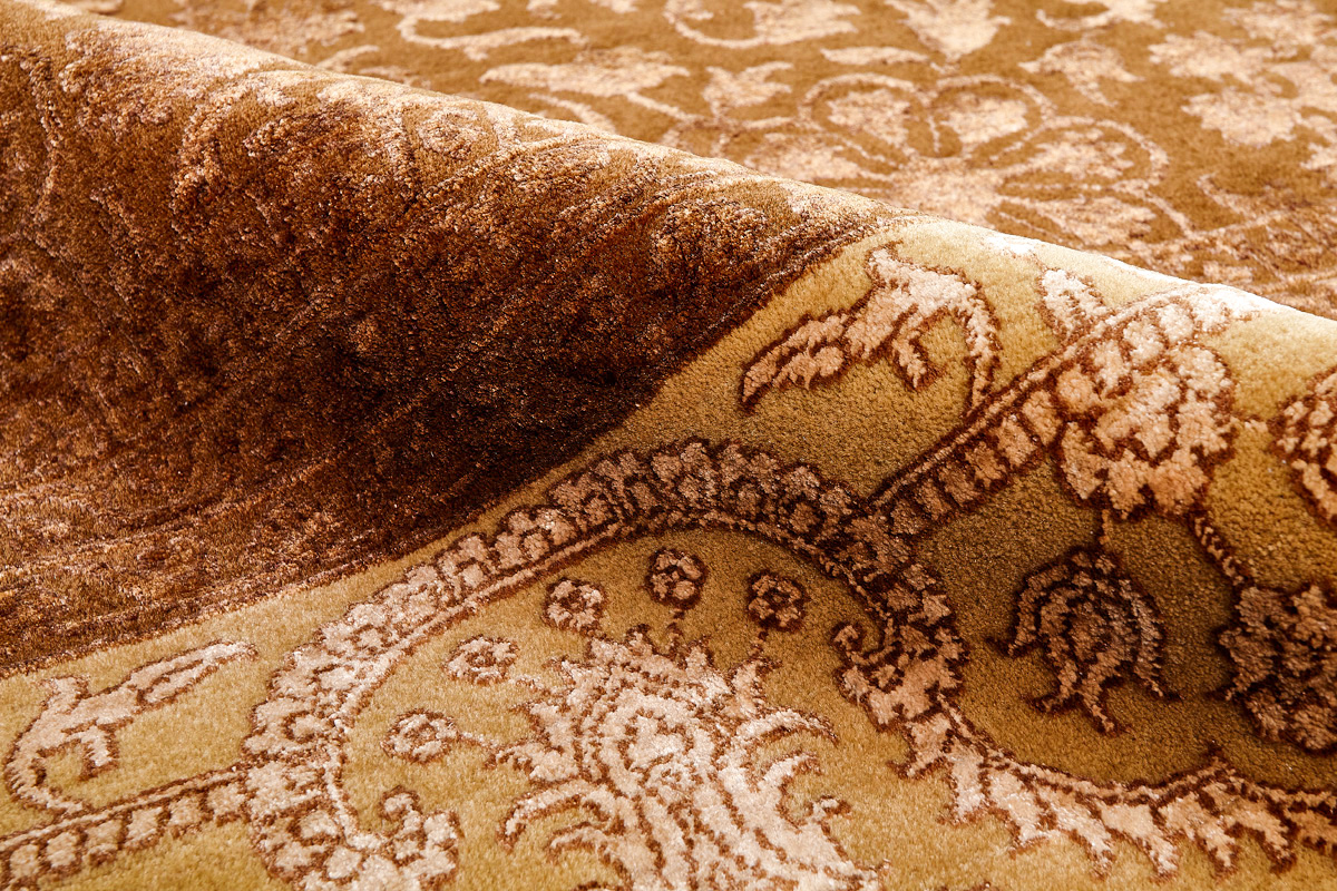 Каждый ковер в этой коллекции соткан вручную из шерсти и арт шёлка опытными индийскими мастерами.