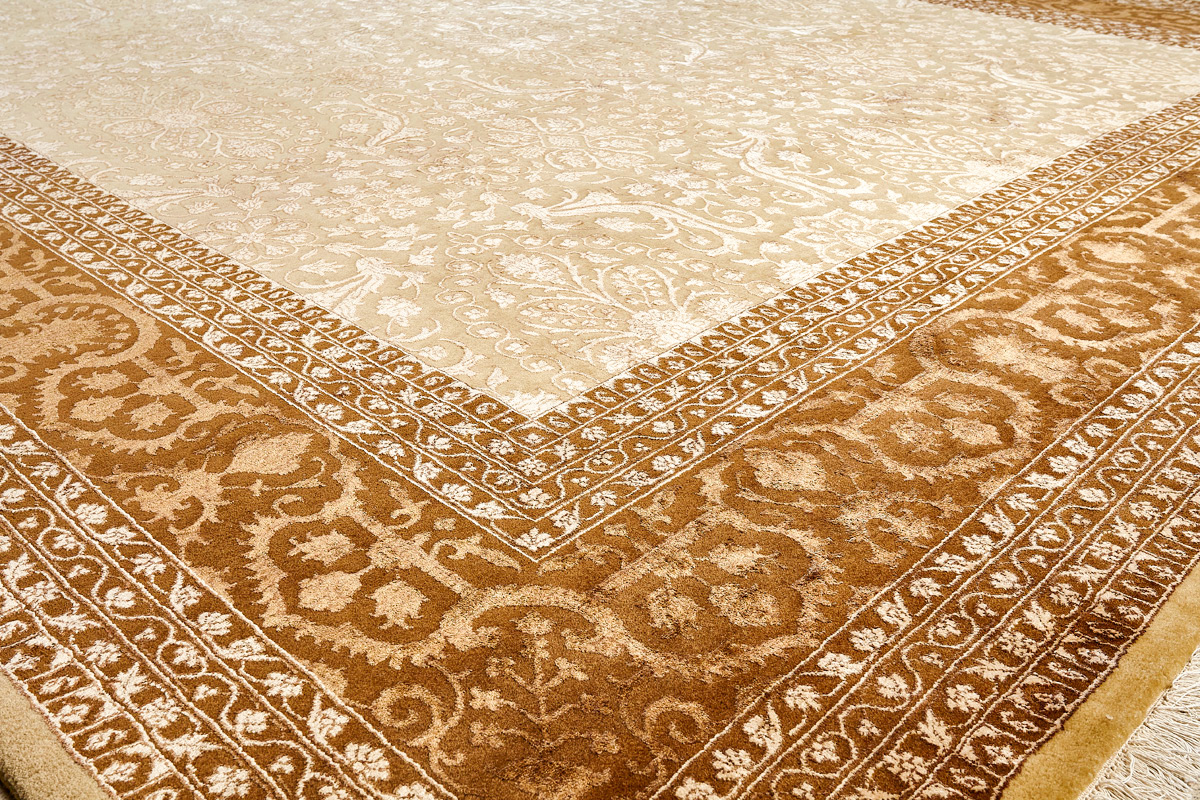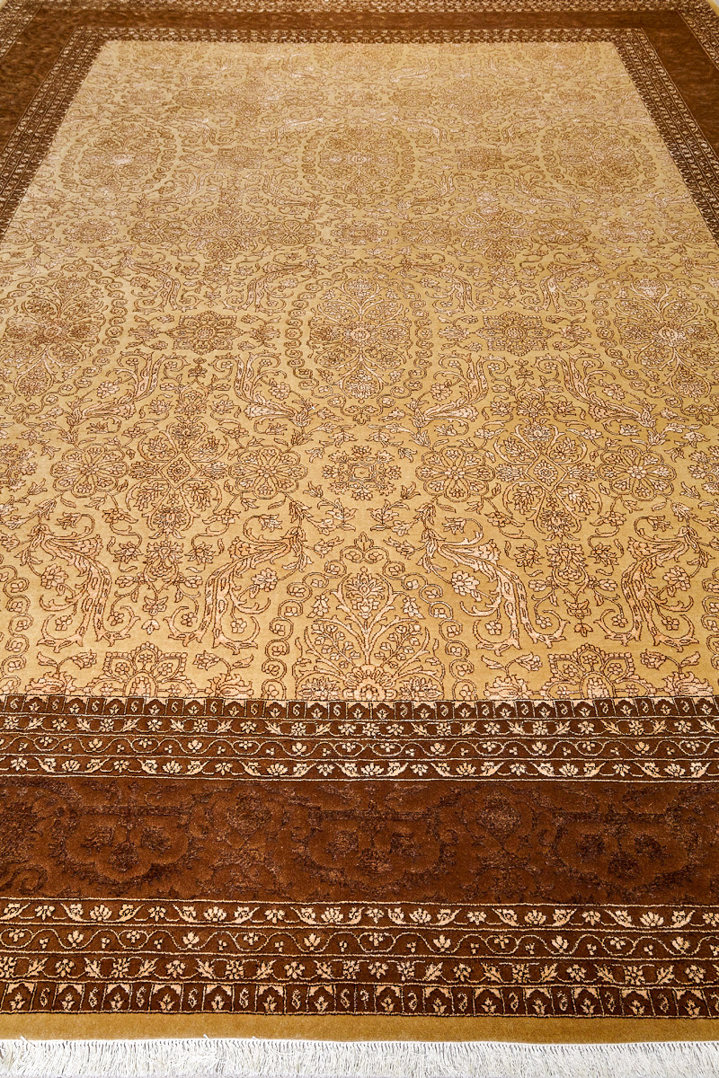 Каждый ковер в этой коллекции соткан вручную из шерсти и арт шёлка опытными индийскими мастерами.
