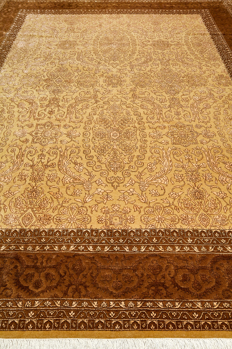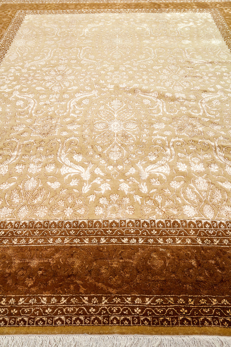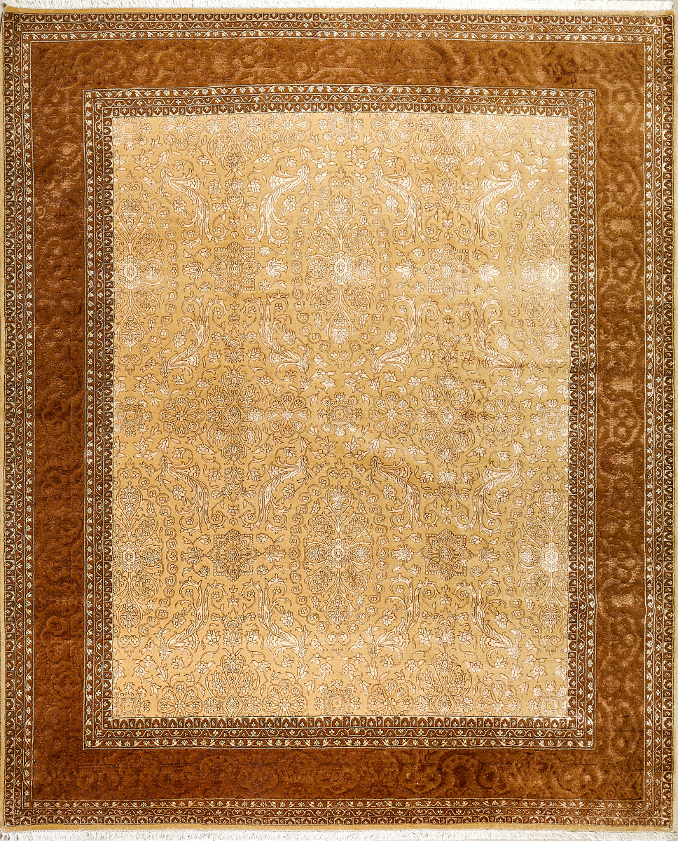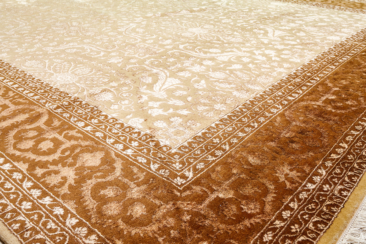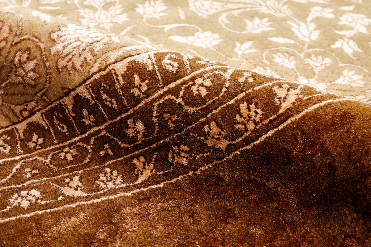 Каждый ковер в этой коллекции соткан вручную из шерсти и арт шёлка опытными индийскими мастерами.