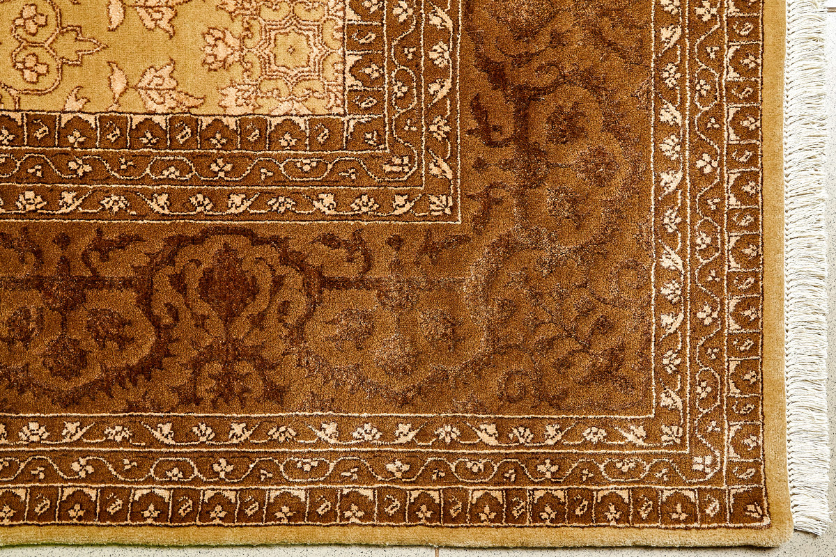 Более пяти веков назад в городе Агра зародилась знаменитая индийская школа ковроткачества, прославившаяся не меньше, чем расположенный здесь же Тадж-Махал. Мощное персидское влияние, помноженное на местный колорит, привело к появлению оригинальных орнаментов с богатыми растительными узорами — причудливым цветам, ветвям и листьям, разбросанным по всему полю ковра.