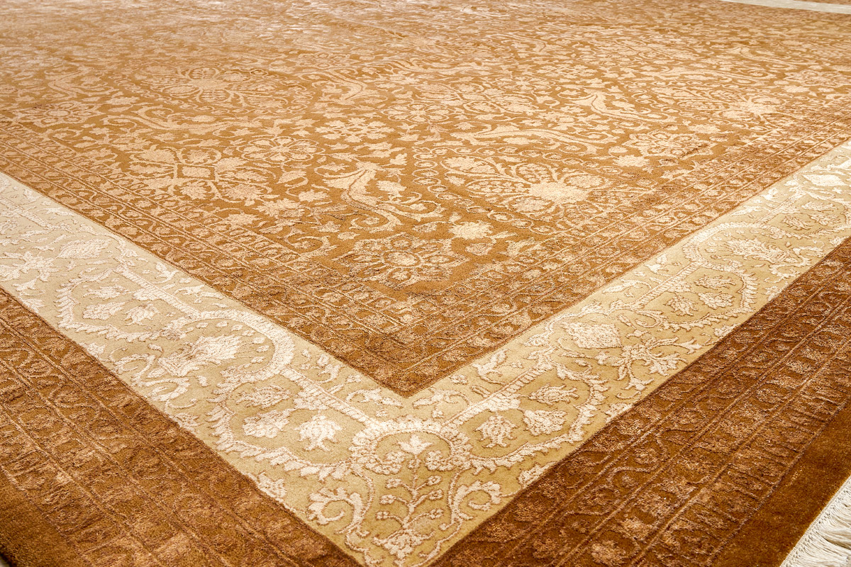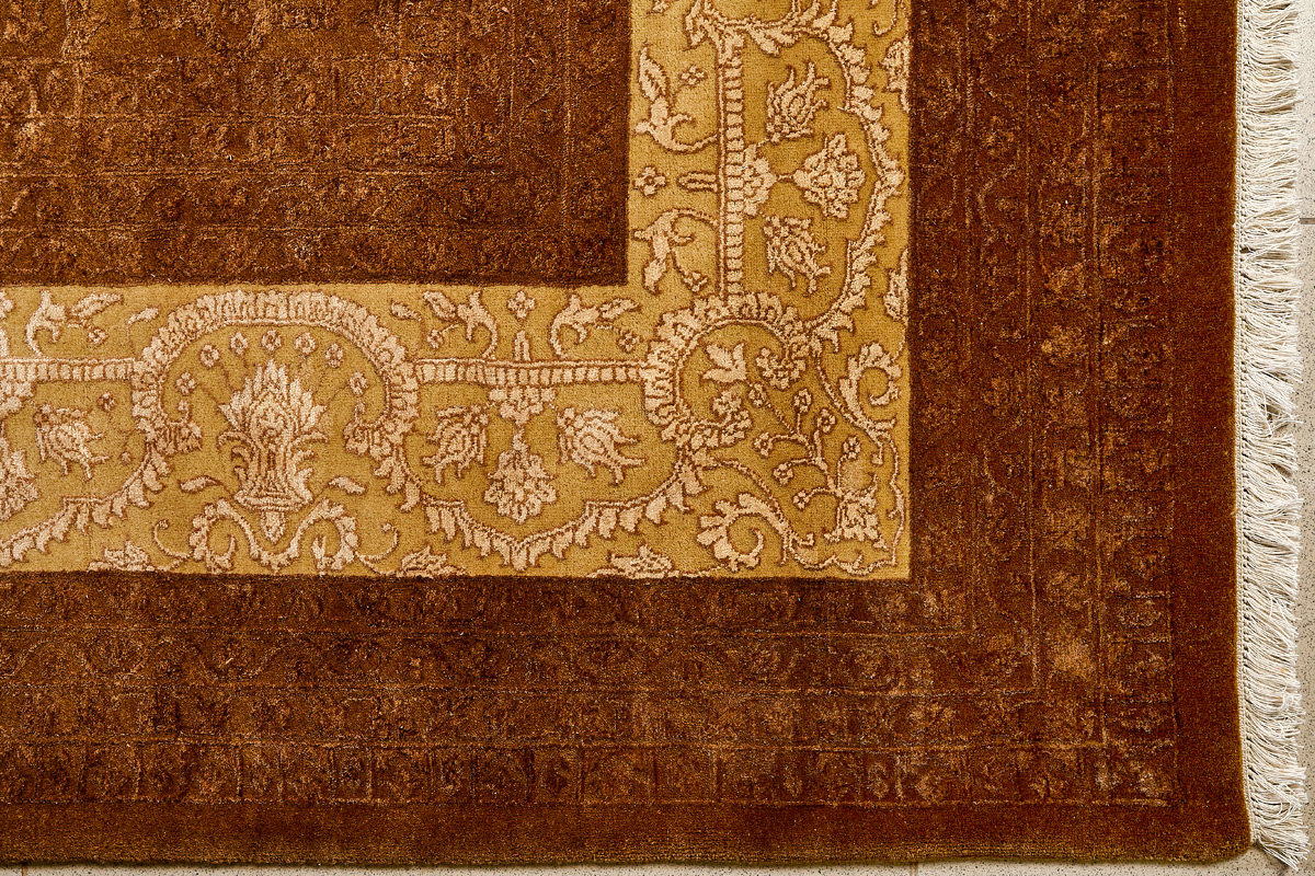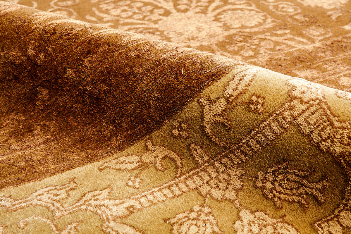 Каждый ковер в этой коллекции соткан вручную из шерсти и арт шёлка опытными индийскими мастерами.