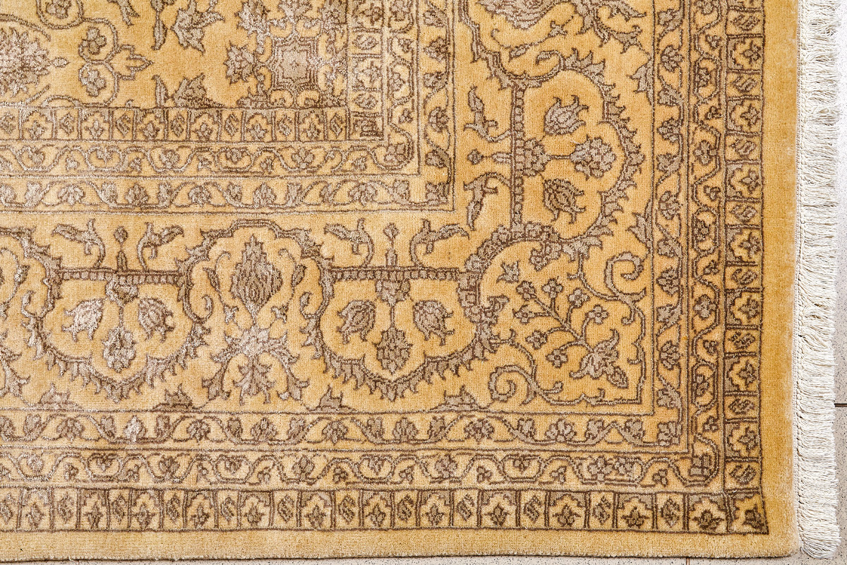 Каждый ковер в этой коллекции соткан вручную из шерсти и арт шёлка опытными индийскими мастерами.