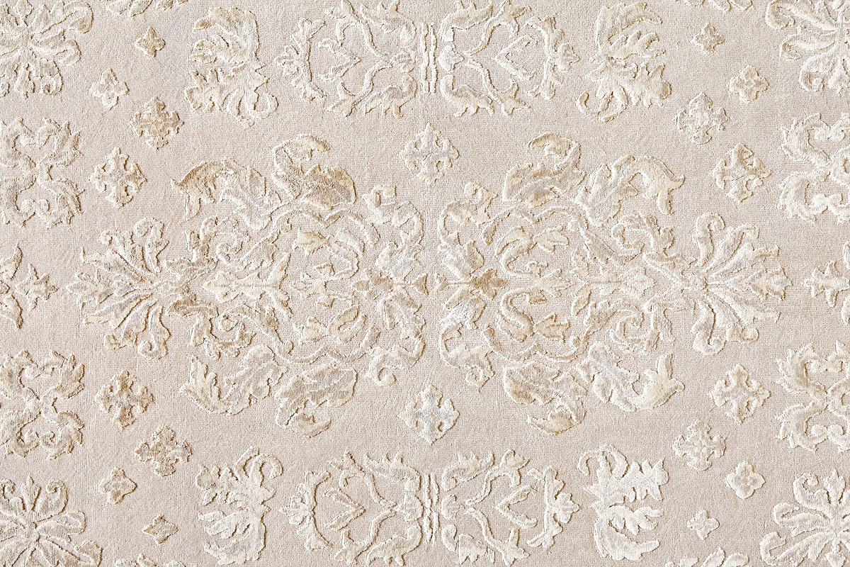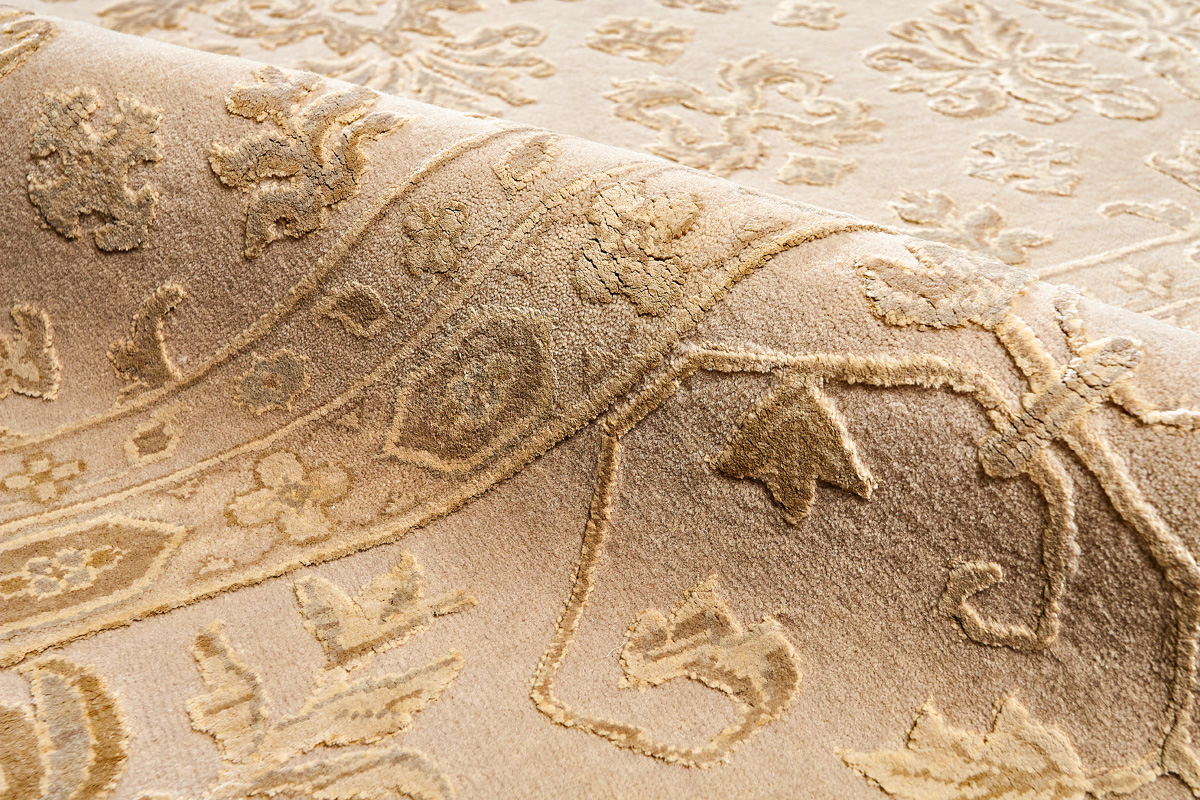 Каждый ковер в этой коллекции соткан вручную из шерсти и арт шёлка опытными индийскими мастерами.