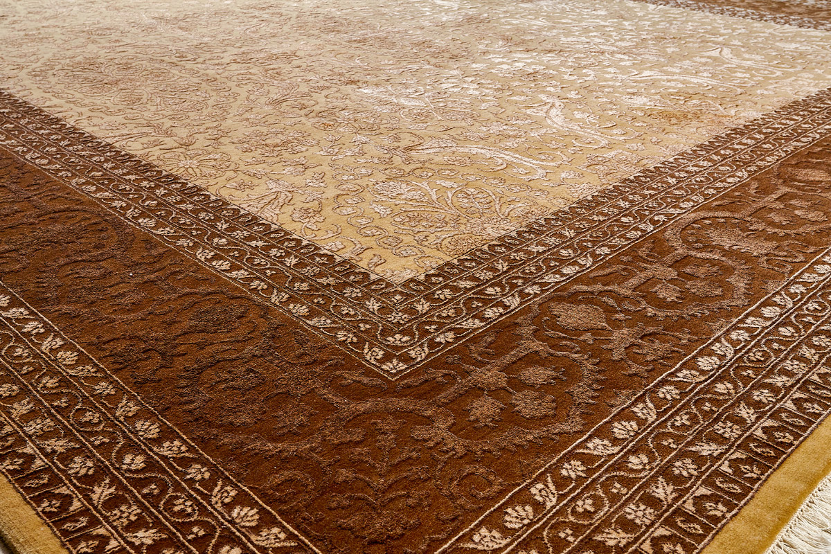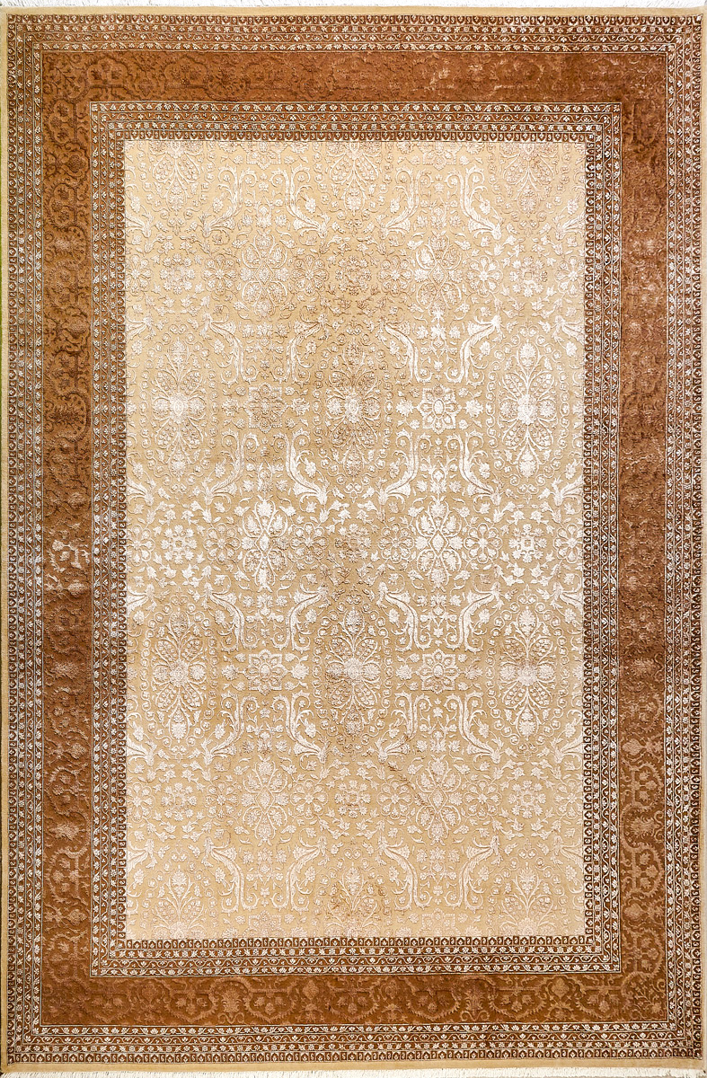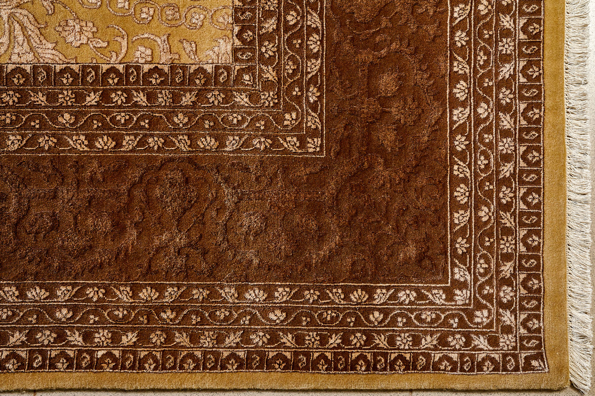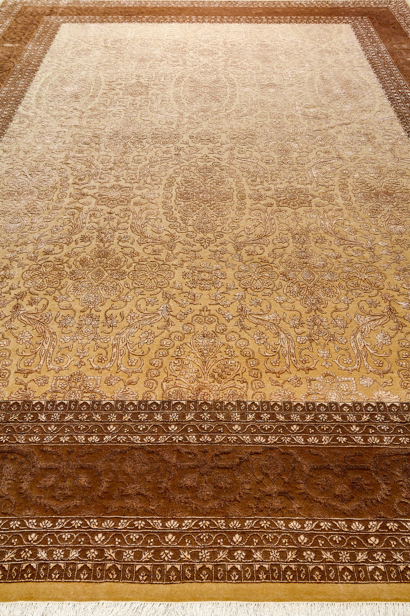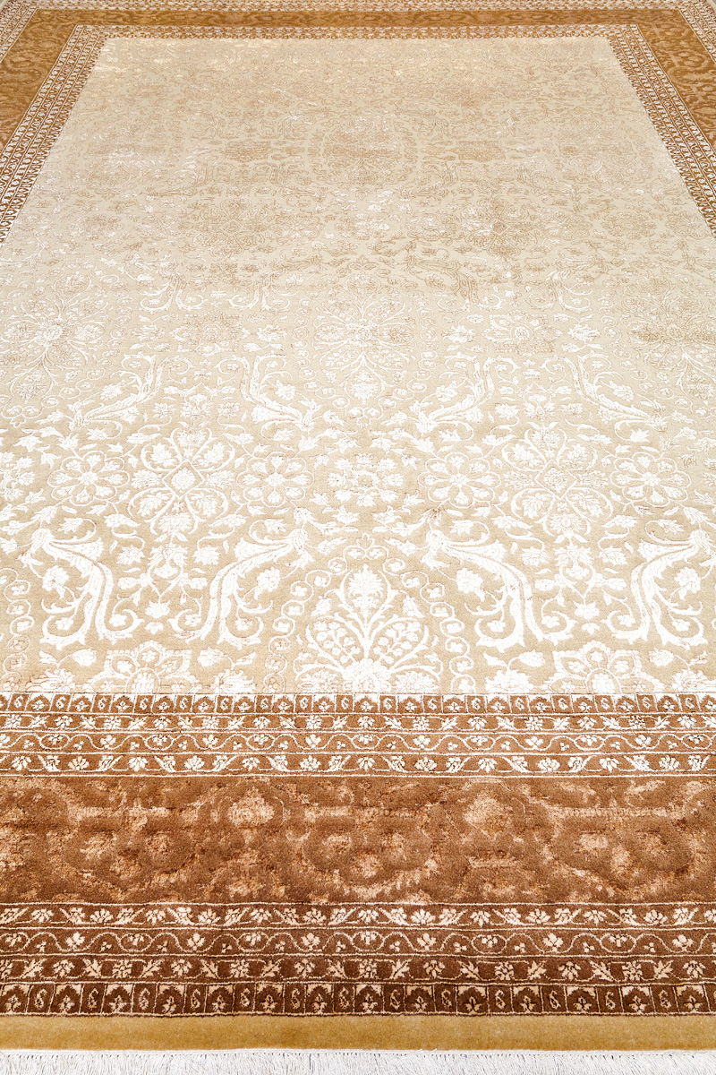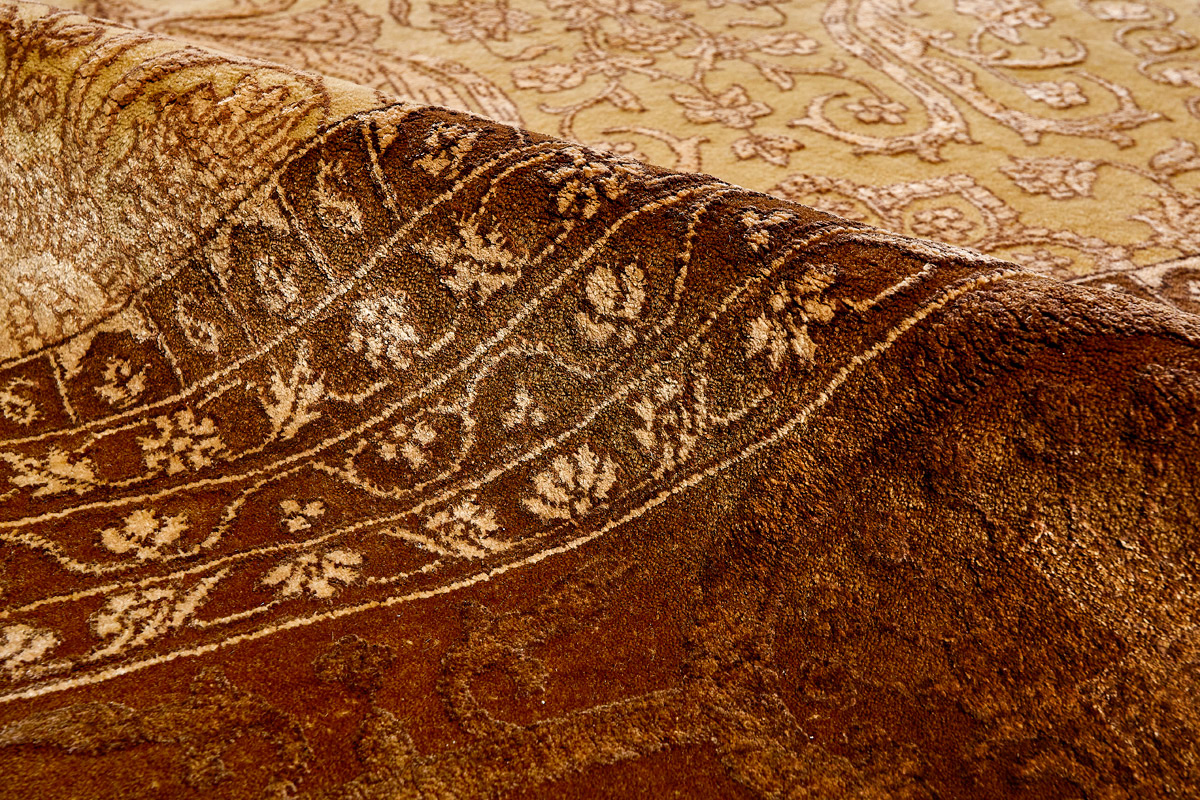 Каждый ковер в этой коллекции соткан вручную из шерсти и арт шёлка опытными индийскими мастерами.