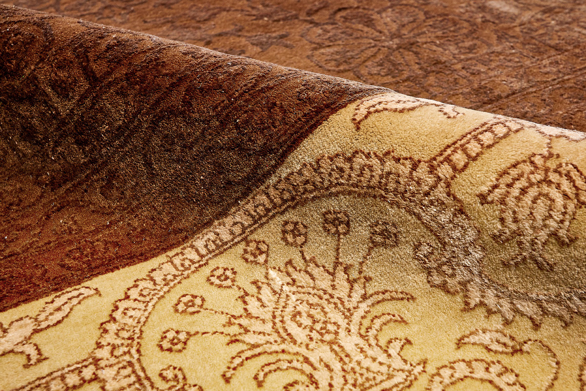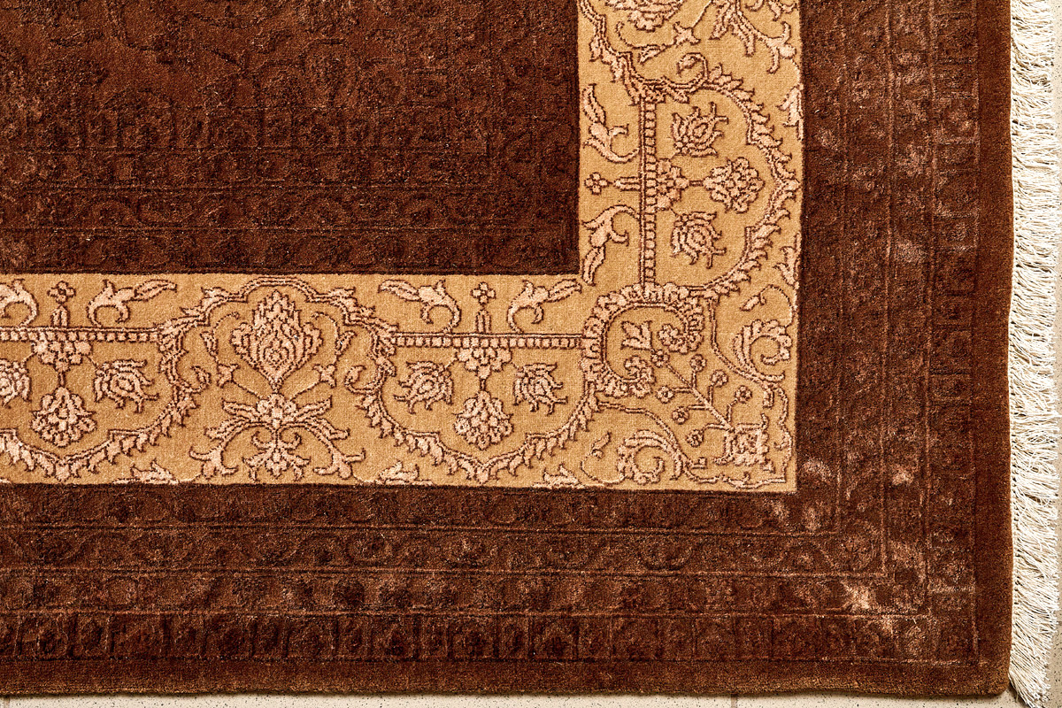 Каждый ковер в этой коллекции соткан вручную из шерсти и арт шёлка опытными индийскими мастерами.