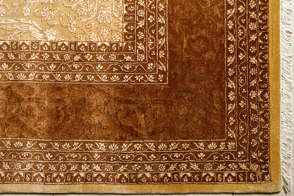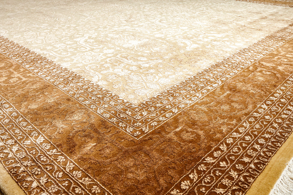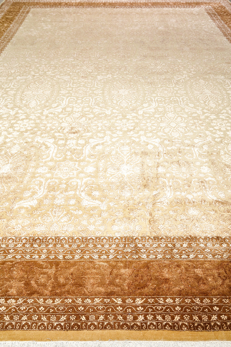 Каждый ковер в этой коллекции соткан вручную из шерсти и арт шёлка опытными индийскими мастерами.