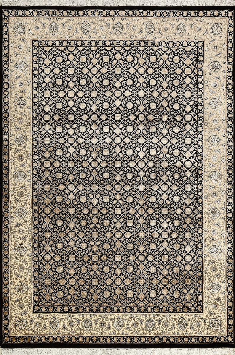 Каждый ковер в этой коллекции соткан вручную из шерсти и арт шёлка опытными индийскими мастерами.