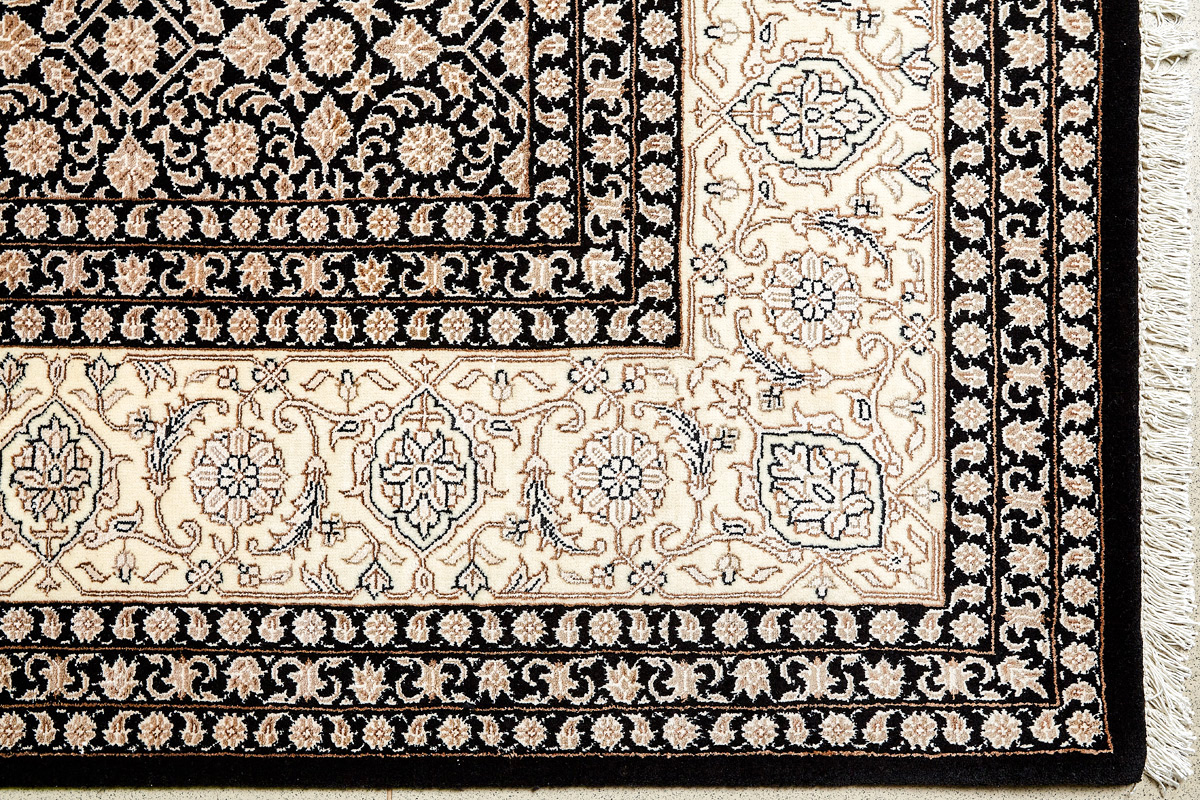 Более пяти веков назад в городе Агра зародилась знаменитая индийская школа ковроткачества, прославившаяся не меньше, чем расположенный здесь же Тадж-Махал. Мощное персидское влияние, помноженное на местный колорит, привело к появлению оригинальных орнаментов с богатыми растительными узорами — причудливым цветам, ветвям и листьям, разбросанным по всему полю ковра.