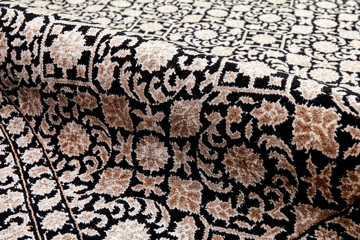 Каждый ковер в этой коллекции соткан вручную из шерсти и арт шёлка опытными индийскими мастерами.