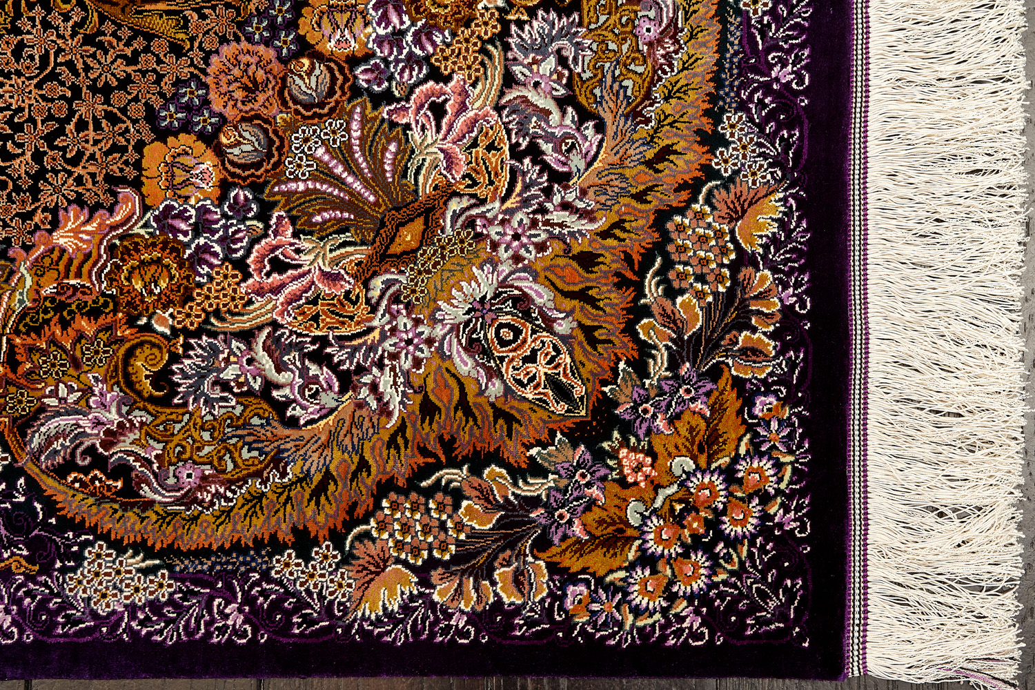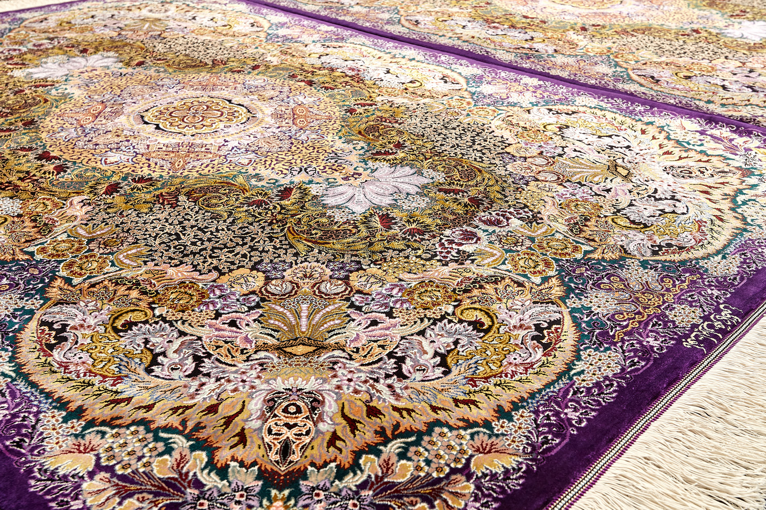 Шёлковая нить гибкая и прочная, поэтому ковры из этого материала считаются самыми износостойкими, а по количеству цветов в одном узоре ковры из коллекции Кум, пожалуй, остаются непревзойдёнными.