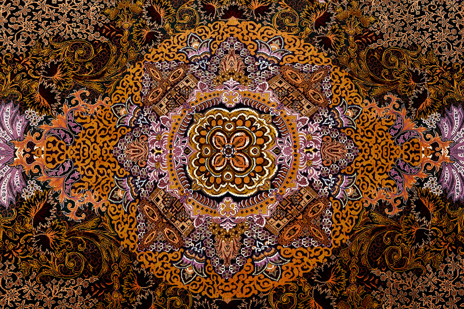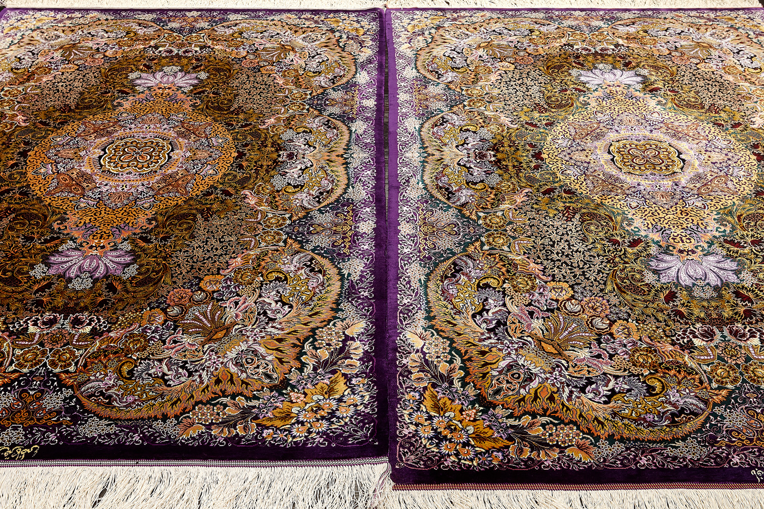 Детальные орнаменты, множество насыщенных оттенков, мягкость и нежность переливающегося шёлка стали отличительными чертами прекрасных ковров и обеспечили им мировую известность.