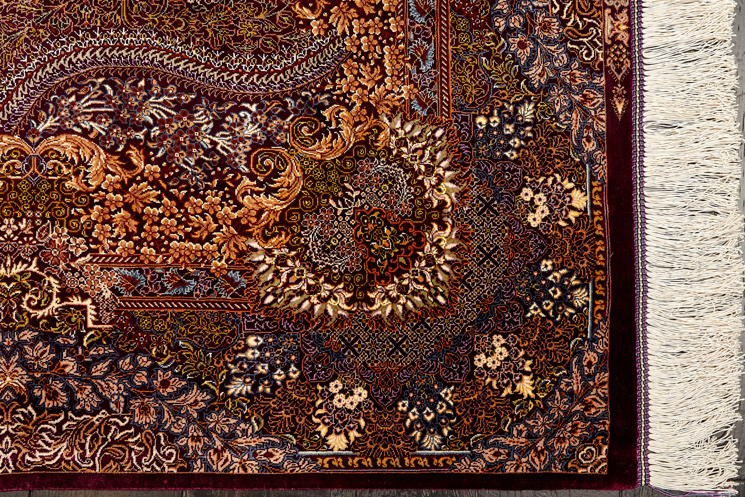 Шёлковая нить гибкая и прочная, поэтому ковры из этого материала считаются самыми износостойкими, а по количеству цветов в одном узоре ковры из коллекции Кум, пожалуй, остаются непревзойдёнными.