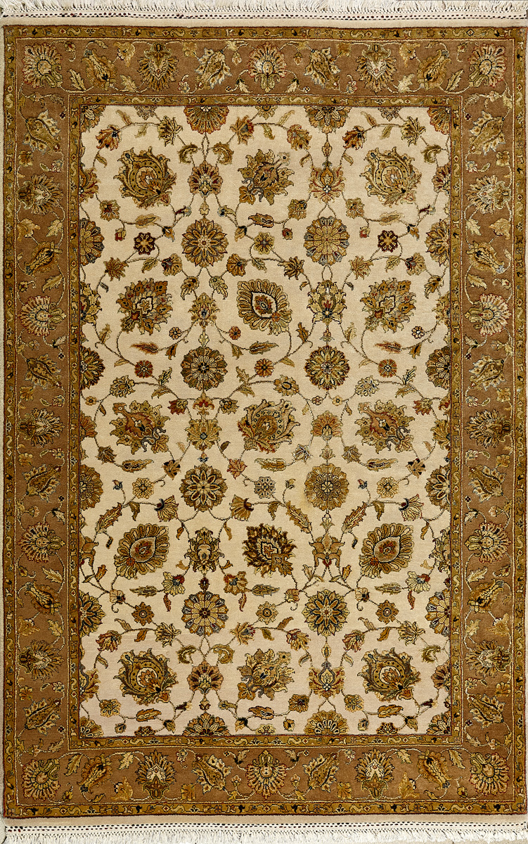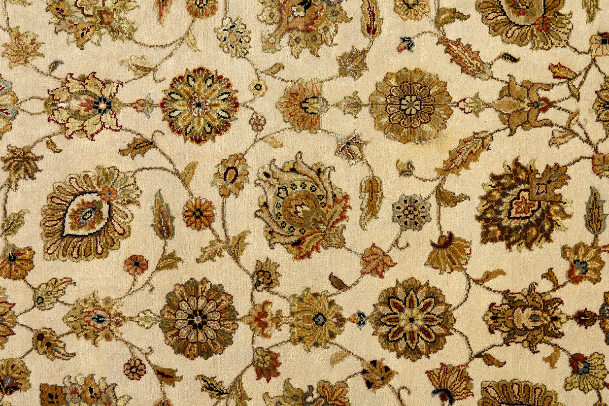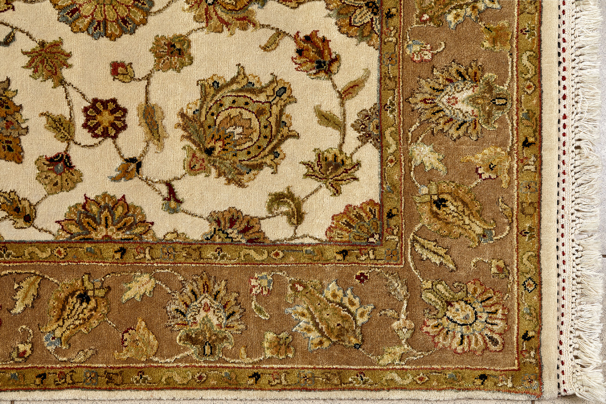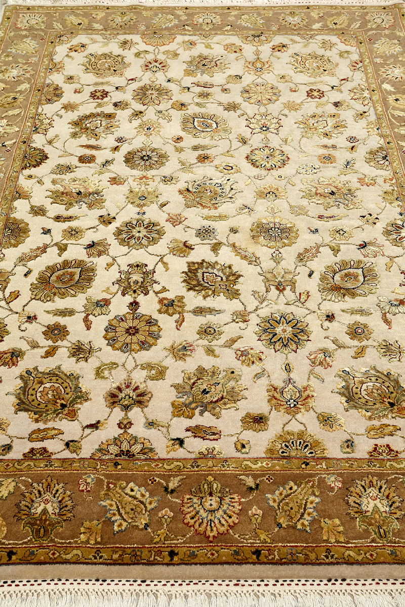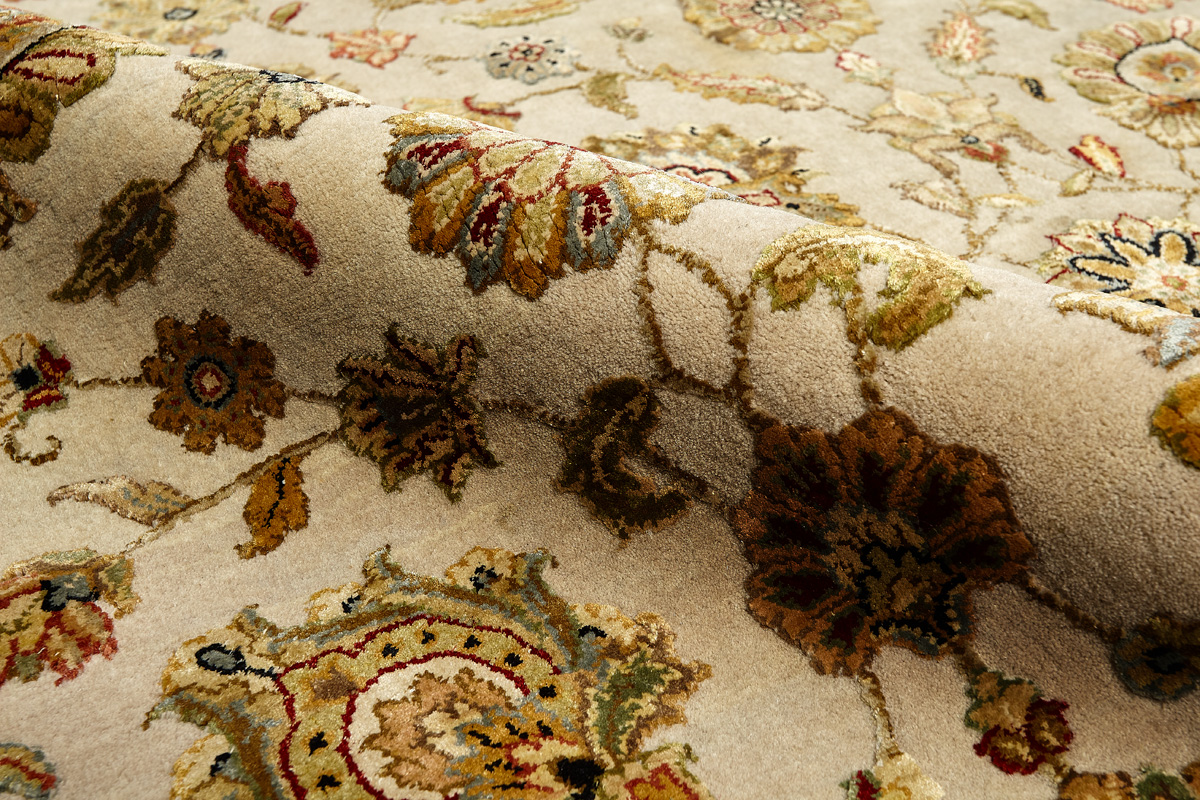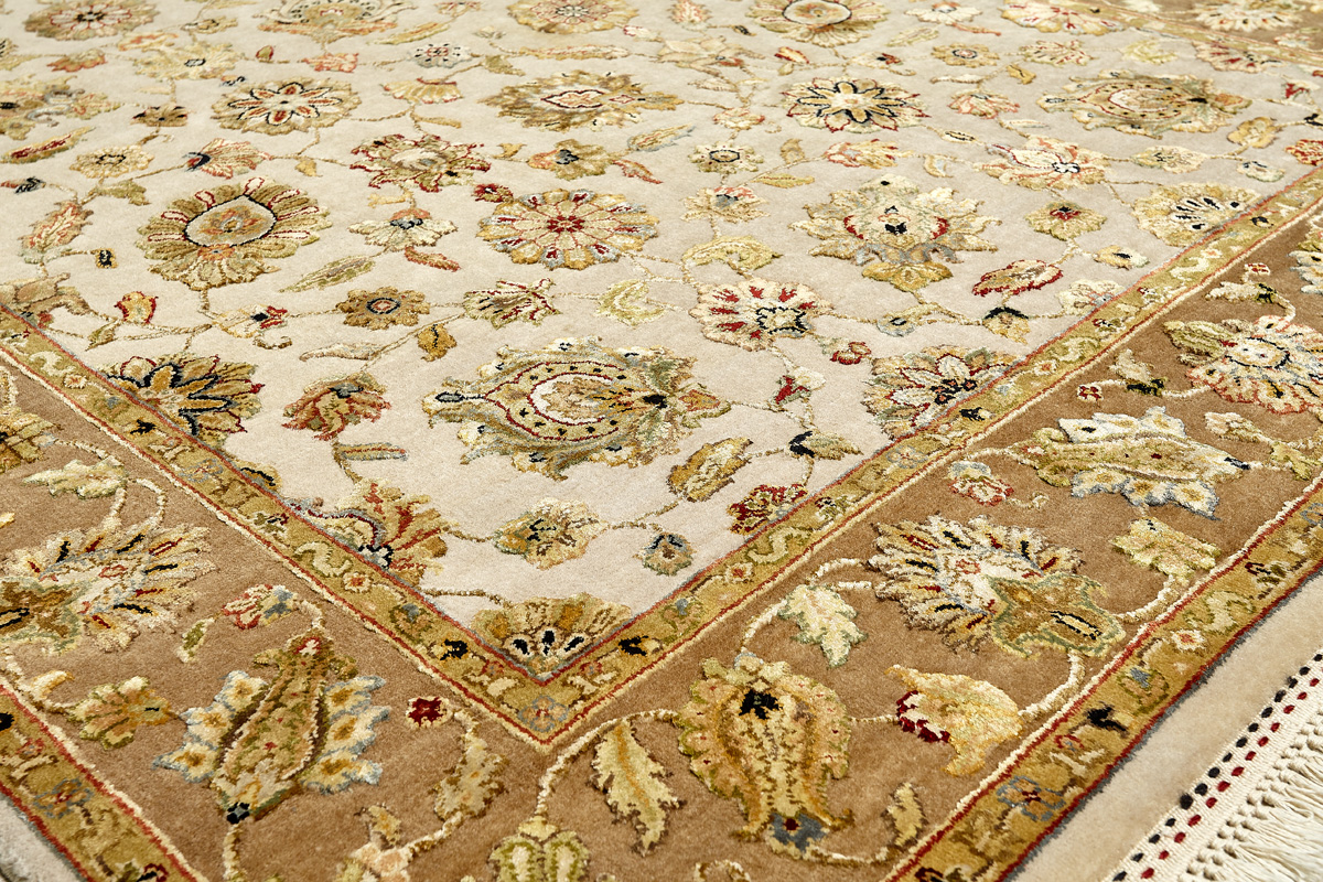 Более пяти веков назад в городе Агра зародилась знаменитая индийская школа ковроткачества, прославившаяся не меньше, чем расположенный здесь же Тадж-Махал. Мощное персидское влияние, помноженное на местный колорит, привело к появлению оригинальных орнаментов с богатыми растительными узорами — причудливым цветам, ветвям и листьям, разбросанным по всему полю ковра.
