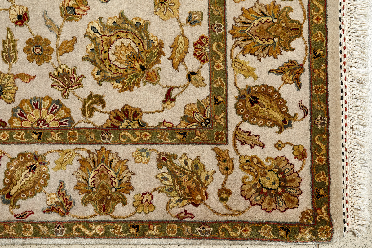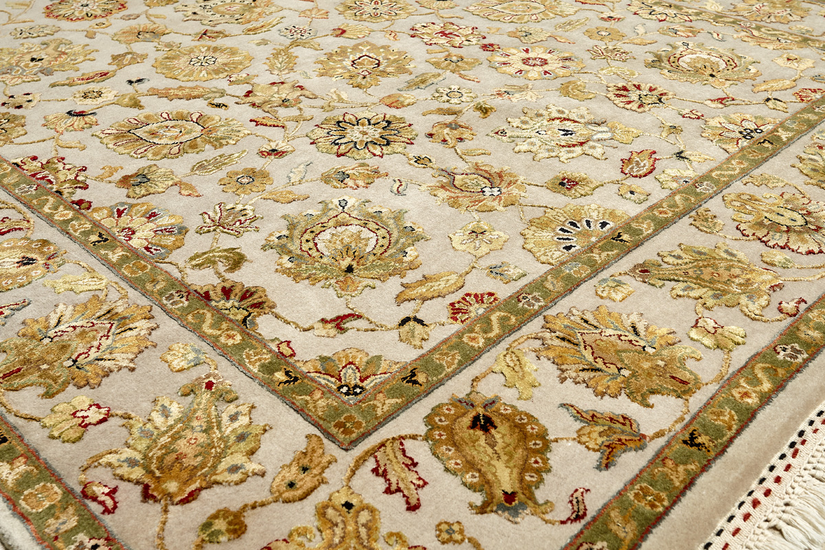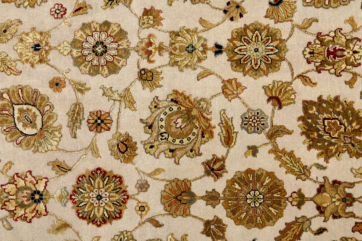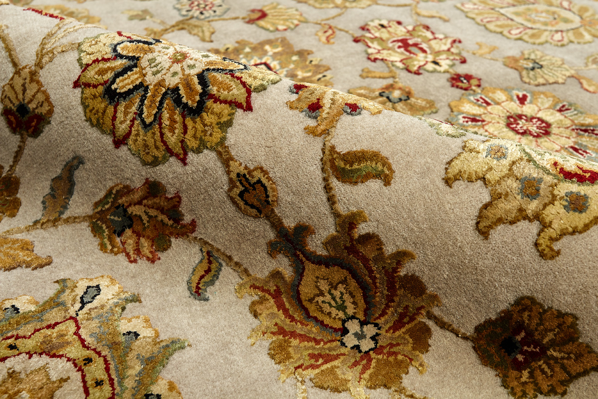 Более пяти веков назад в городе Агра зародилась знаменитая индийская школа ковроткачества, прославившаяся не меньше, чем расположенный здесь же Тадж-Махал. Мощное персидское влияние, помноженное на местный колорит, привело к появлению оригинальных орнаментов с богатыми растительными узорами — причудливым цветам, ветвям и листьям, разбросанным по всему полю ковра.