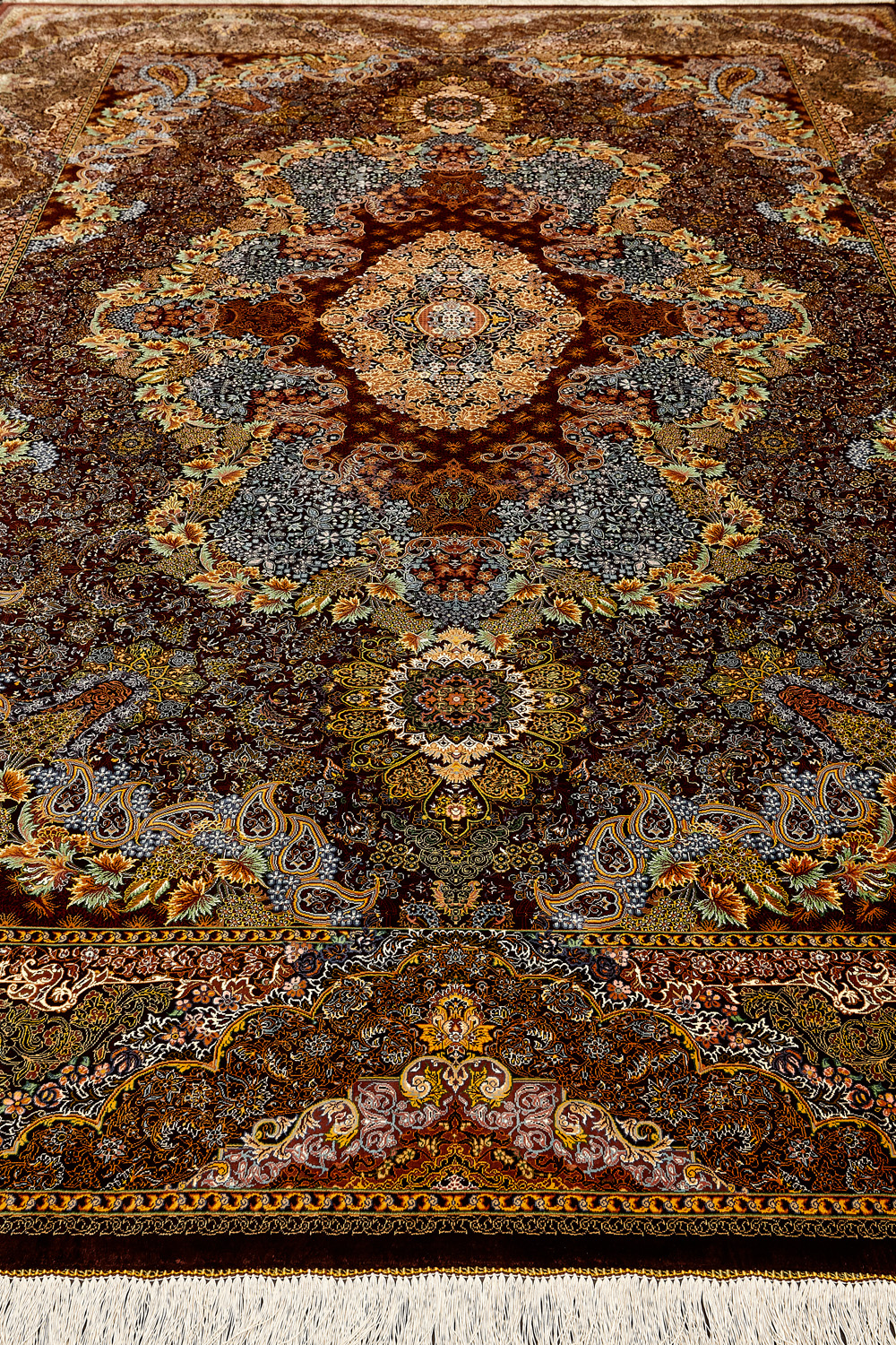 Шёлковая нить гибкая и прочная, поэтому ковры из этого материала считаются самыми износостойкими, а по количеству цветов в одном узоре ковры из коллекции Кум, пожалуй, остаются непревзойдёнными.