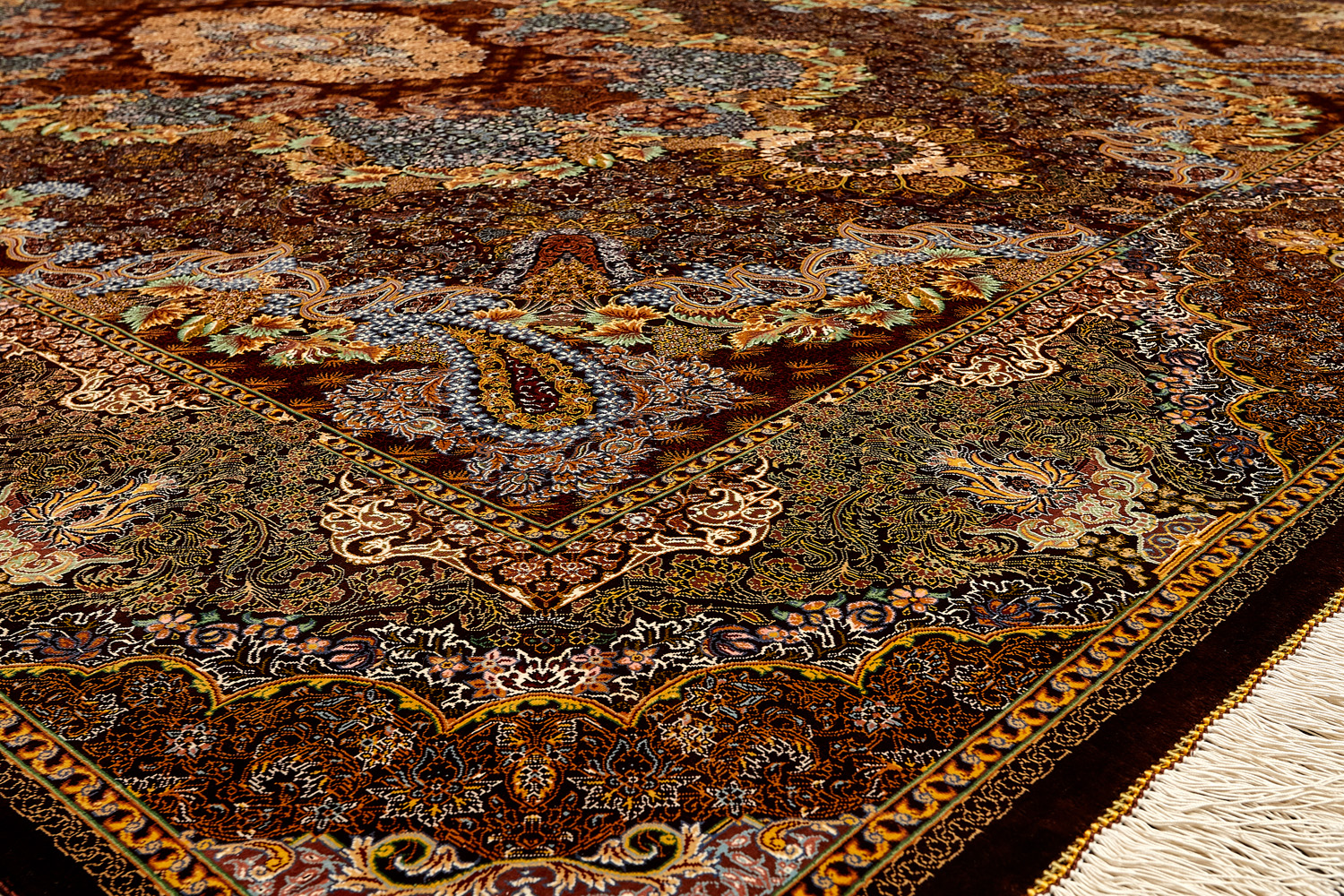 Детальные орнаменты, множество насыщенных оттенков, мягкость и нежность переливающегося шёлка стали отличительными чертами прекрасных ковров и обеспечили им мировую известность.