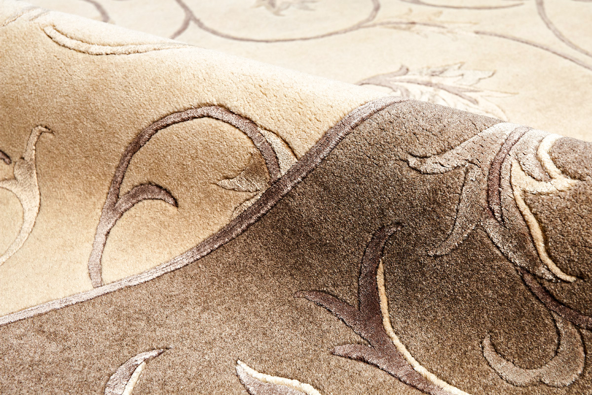 Отличительной особенностью ковров является их состав: помимо овечьей шерсти, добавляется шерсть молодого яка, что придает изделию прочность и шелковистый блеск. Шерсть тщательно вычесывается, промывается, затем из нее изготавливают пряжу.